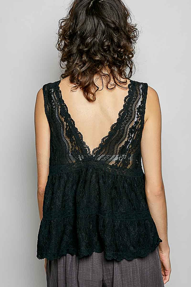 Deep V-Neck Scalloped Lace Sleeveless Top