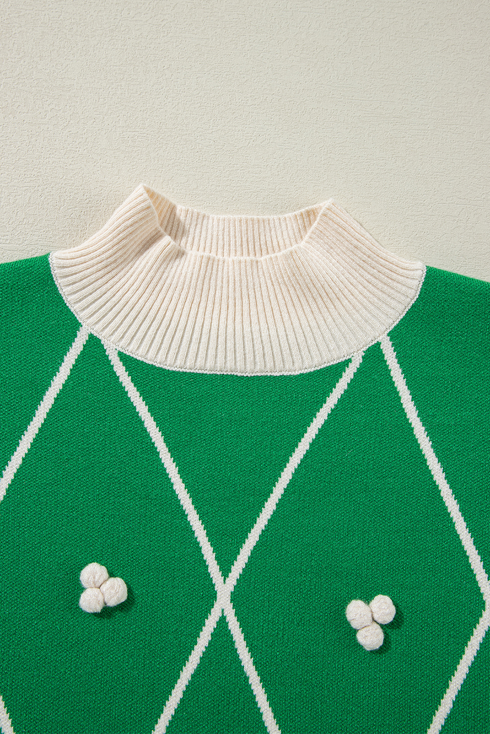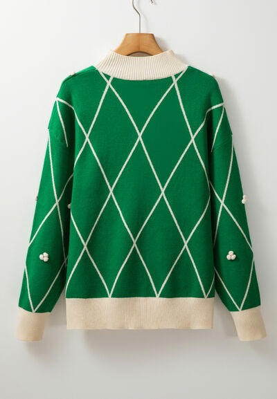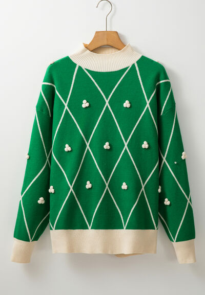 Diamond Pattern Contrast Trim Mock Neck Sweater