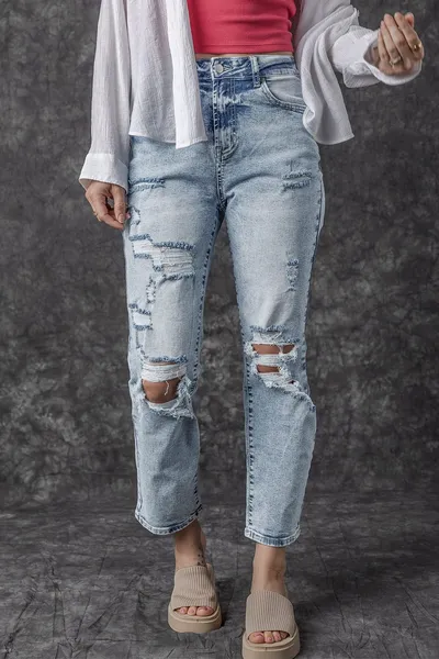 Distressed High Waist Jeans