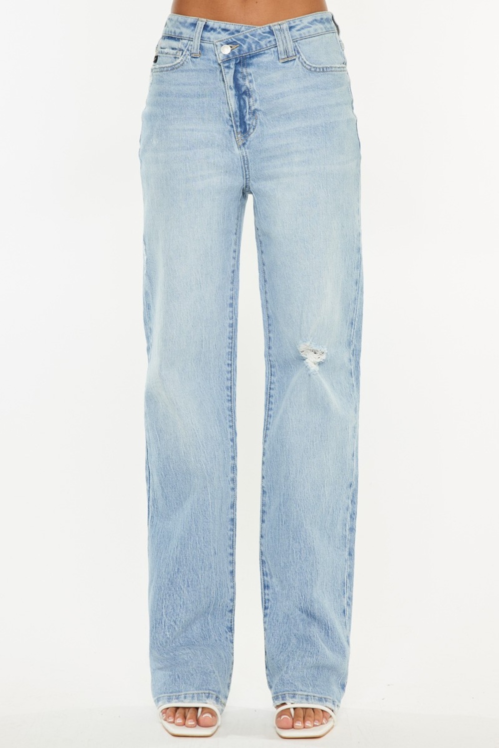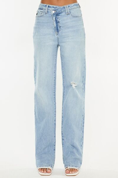 Distressed High Waist Straight Jeans