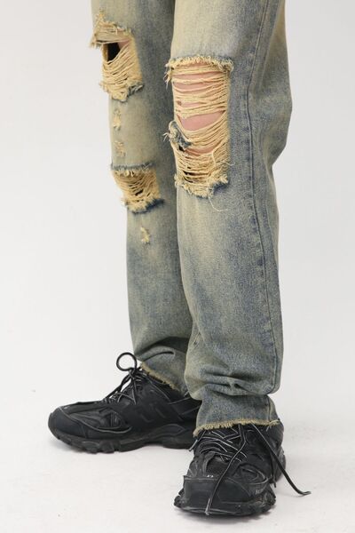 Distressed Mid Rise Jeans with Pockets