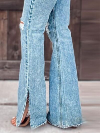 Distressed Slit Bootcut Jeans