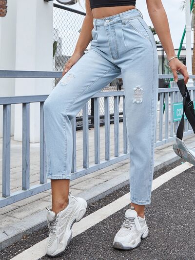 Distressed Straight Jeans with Pockets