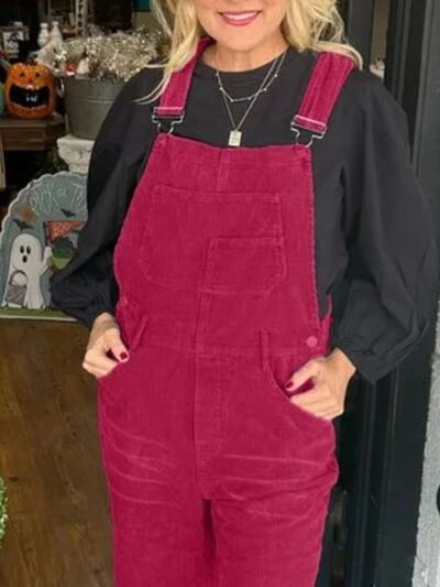 Distressed Wide Leg Corduroy Overalls
