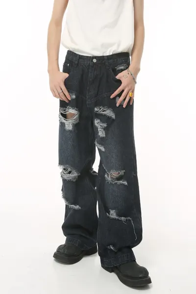 Distressed Wide Leg Pocketed Men's Jeans