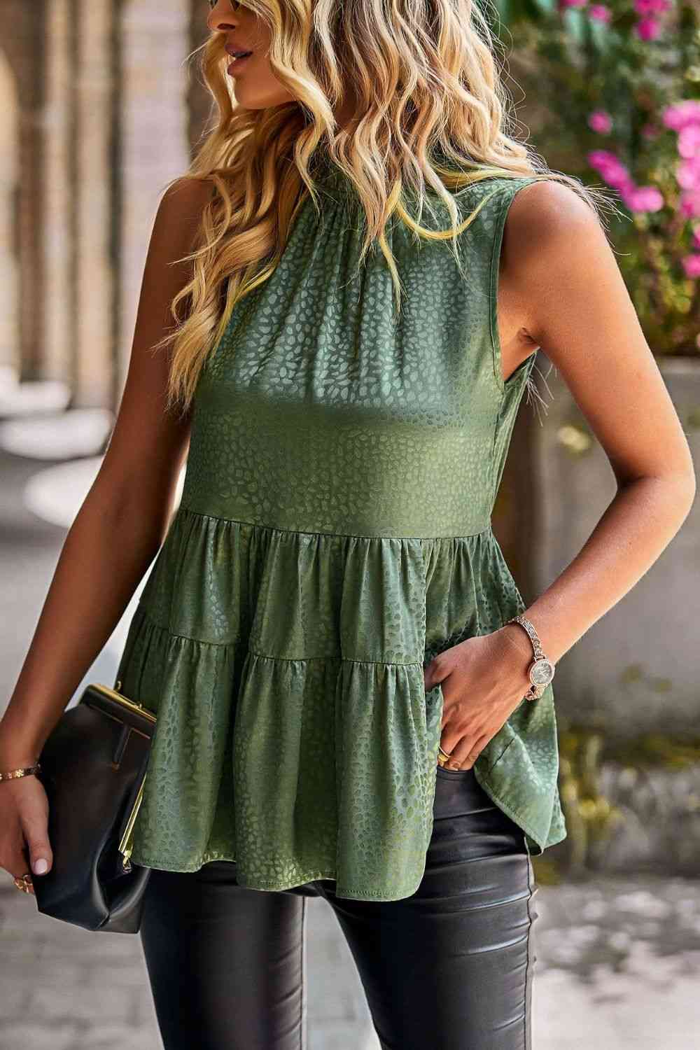 Dotted Frill Trim Sleeveless Tiered Top