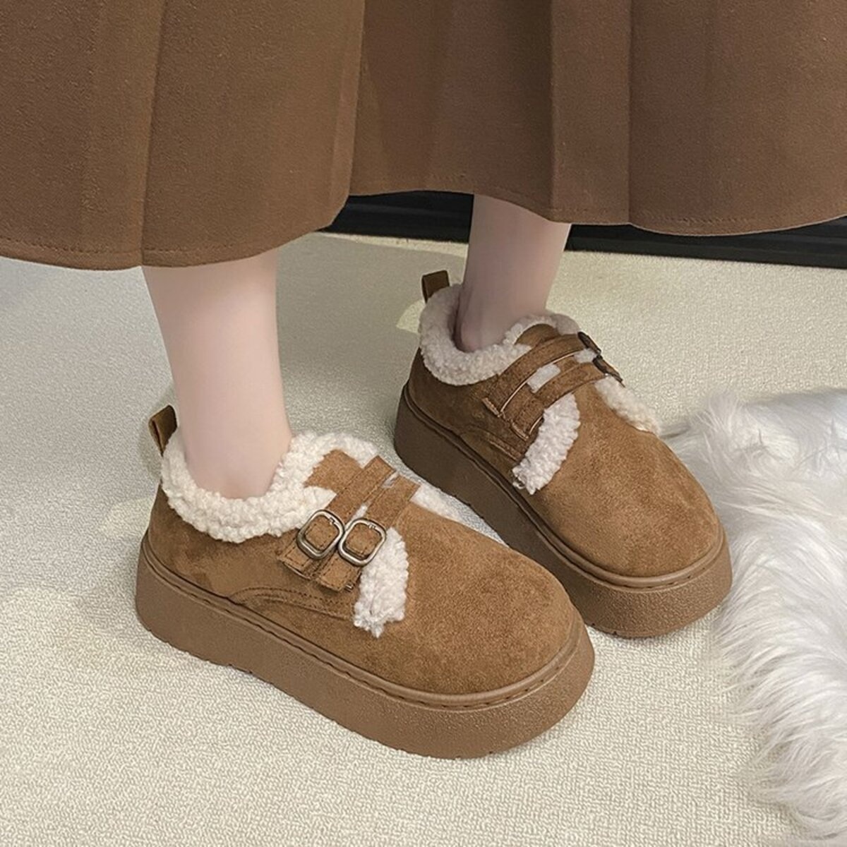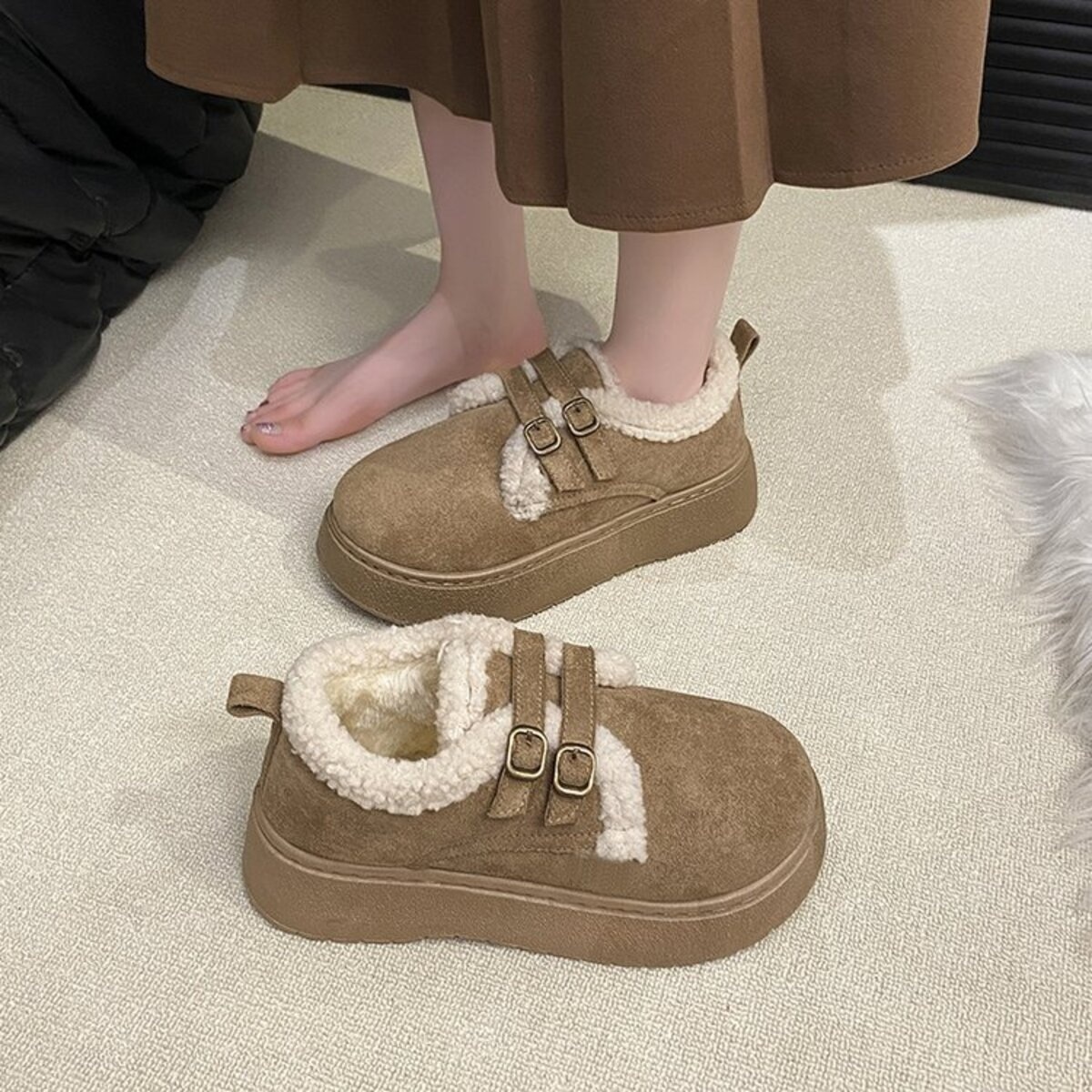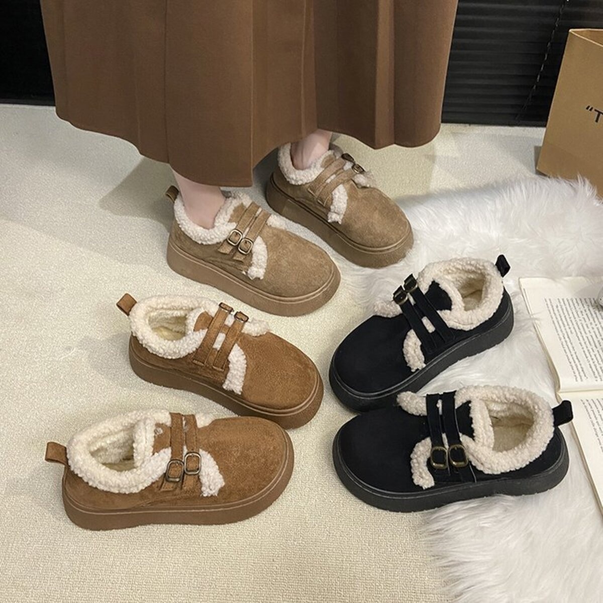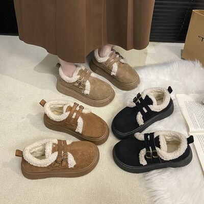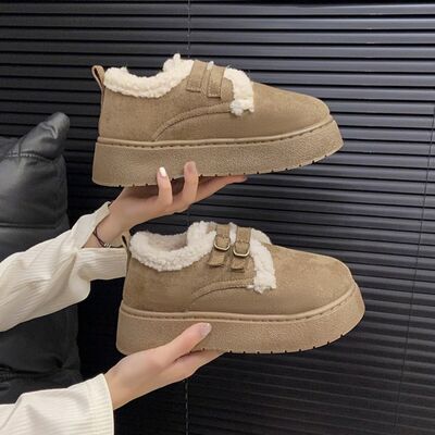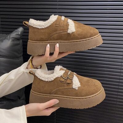 Double Buckle Fur-Lined Winter Ankle Boots