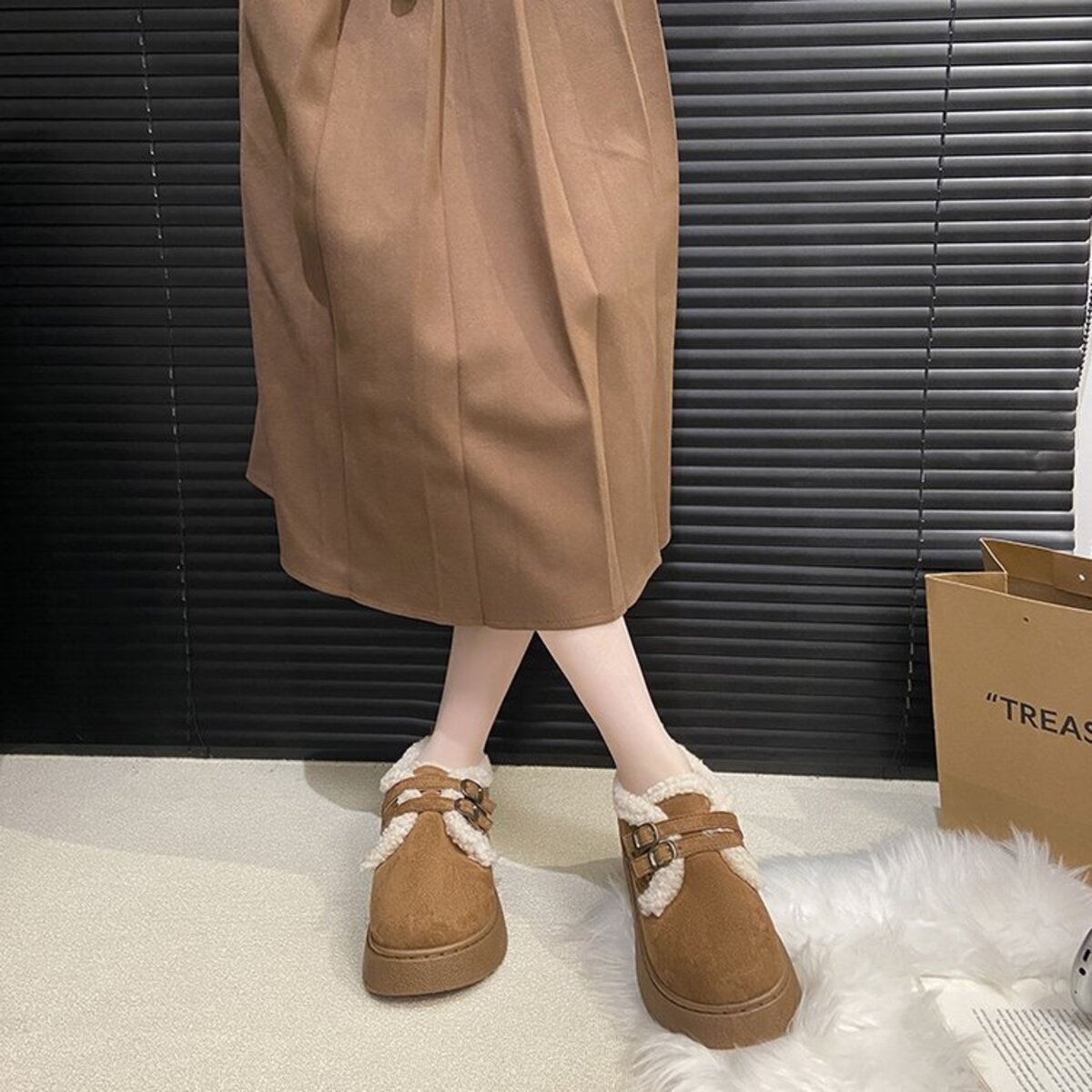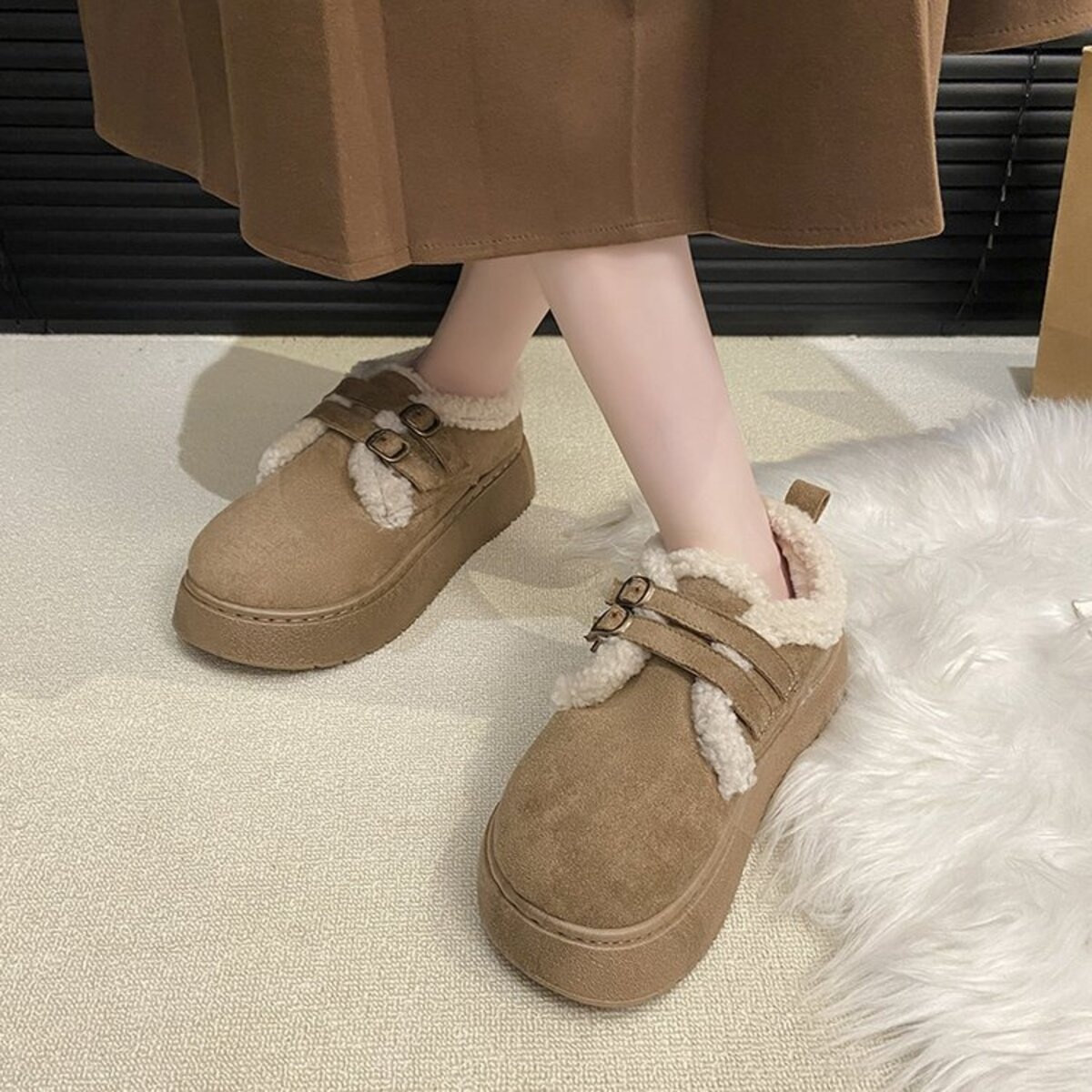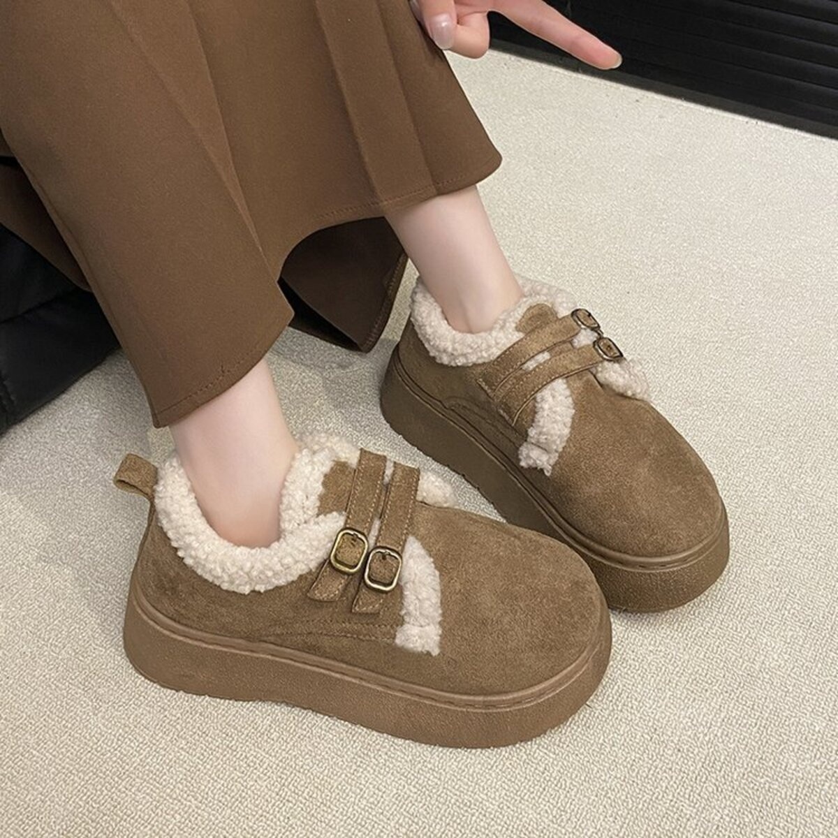 Double Buckle Fur-Lined Winter Ankle Boots