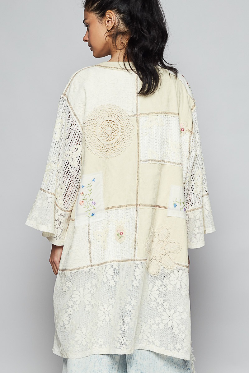 Double Gauze and Lace Mix Cardigan with Embroidered Detail