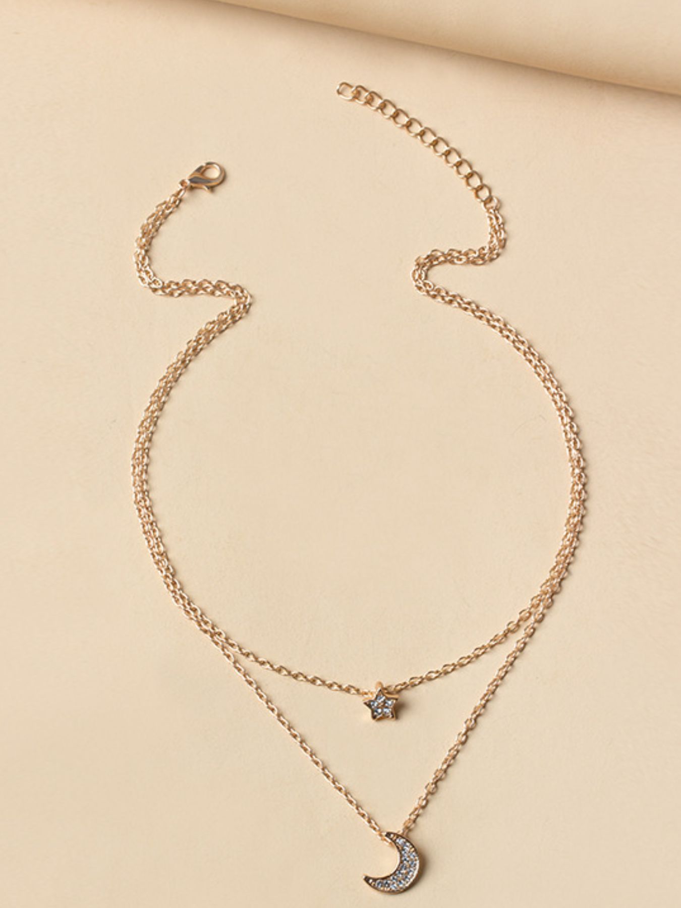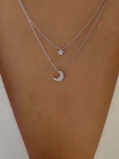 Double Layered Star and Moon Pendant Necklace