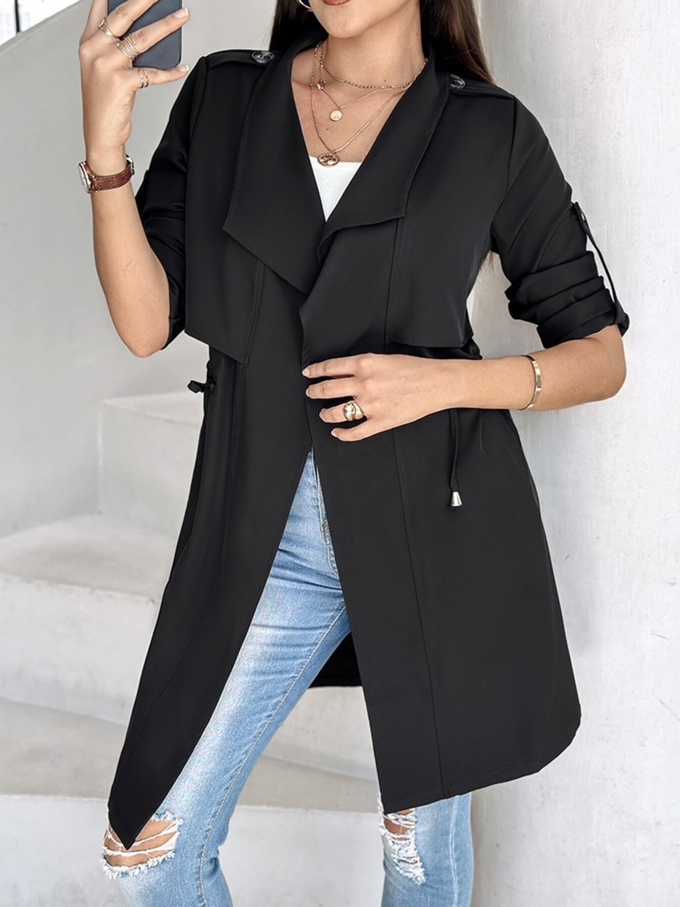 Drape Collar Lightweight Trench Coat