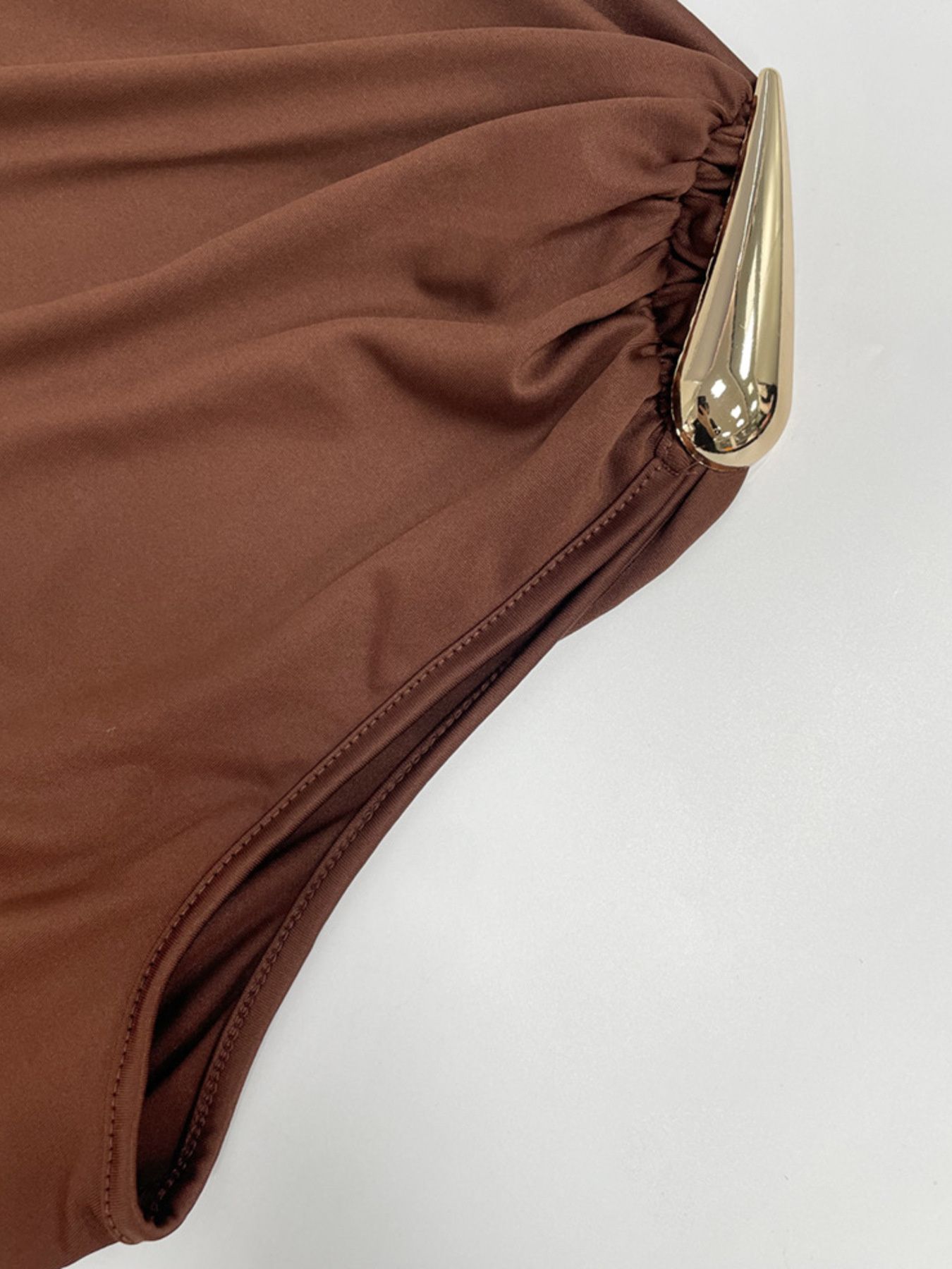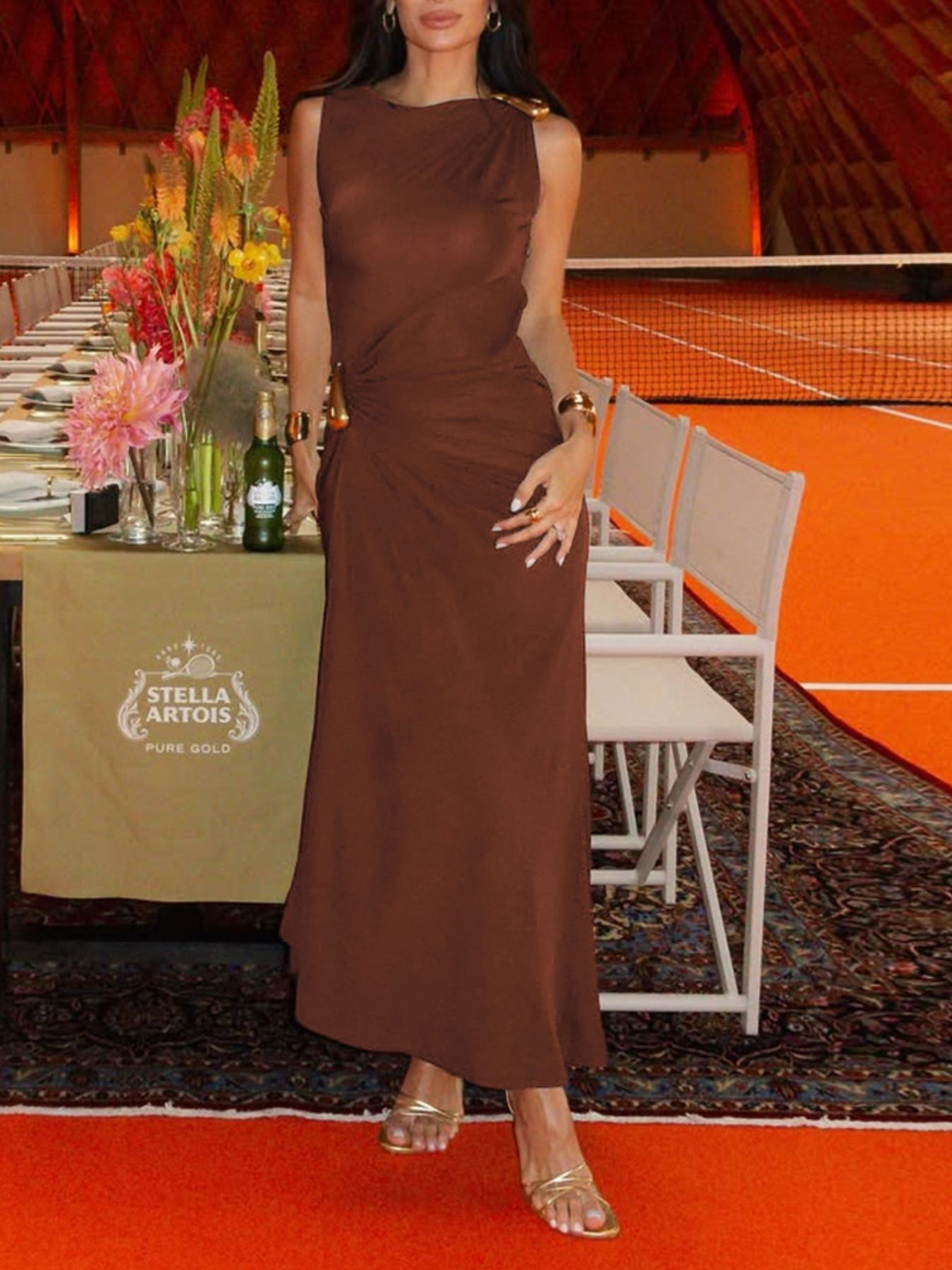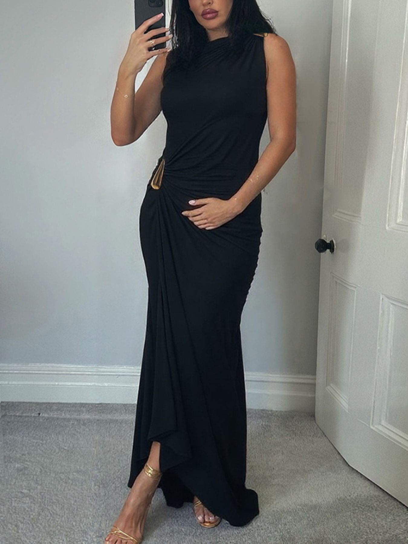 Draped Sleeveless Bodycon Maxi Dress with Metal Decorative