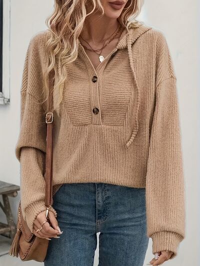 Drawstring Button Front Hoodie