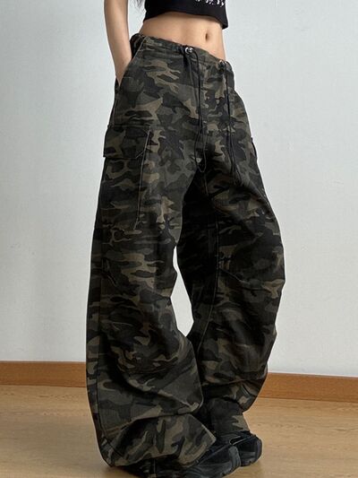 Drawstring Camouflage Cargo Wide Leg Jeans