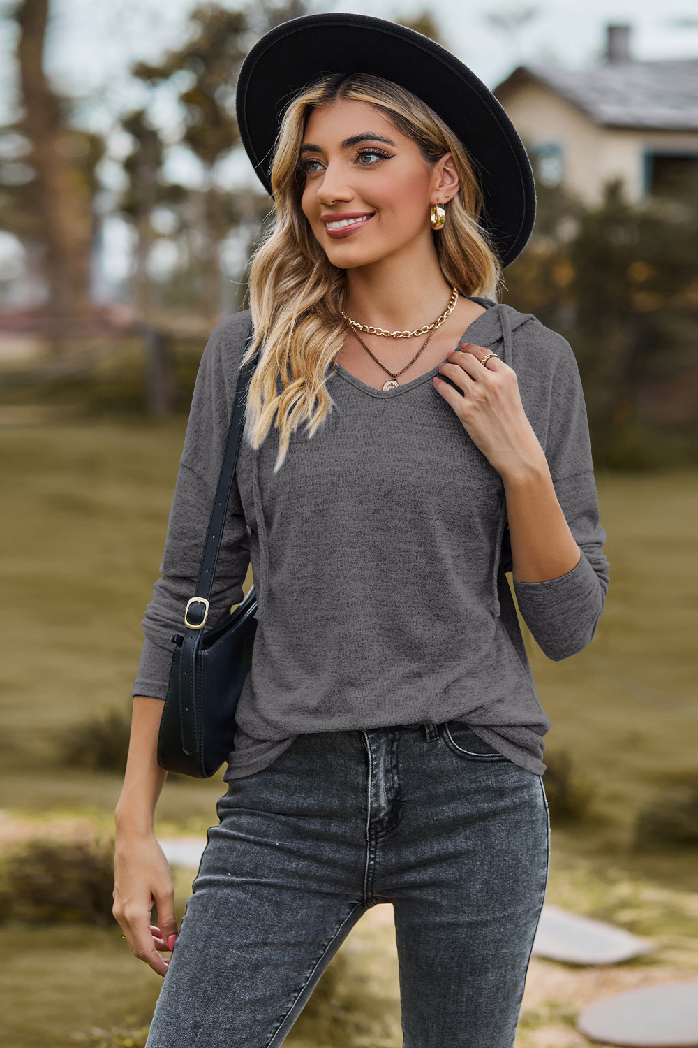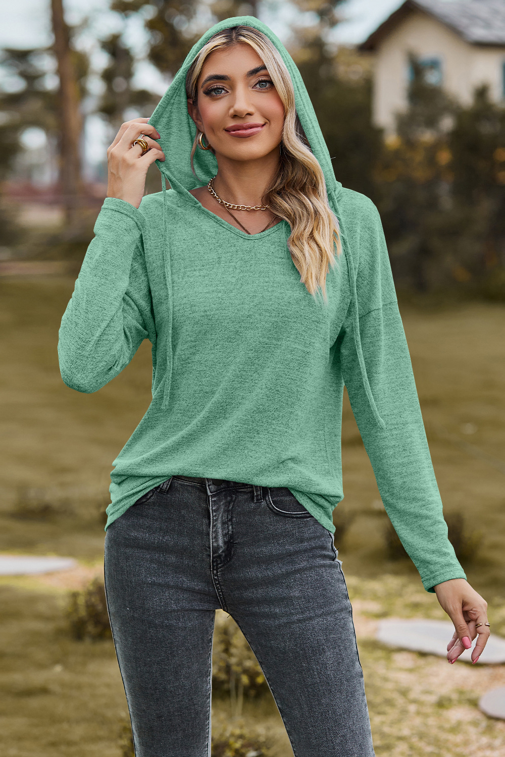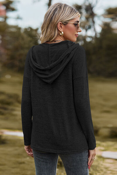 Drawstring Dropped Shoulder Hooded T-Shirt