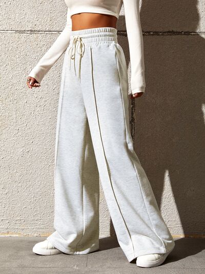 Drawstring Elastic Waist Wide Leg Pants