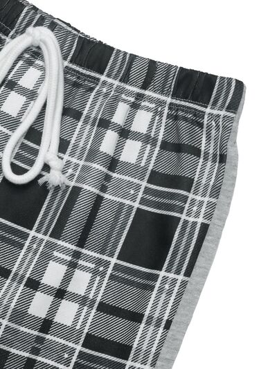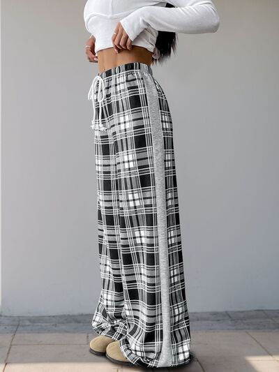 Drawstring Plaid Wide Leg Pants