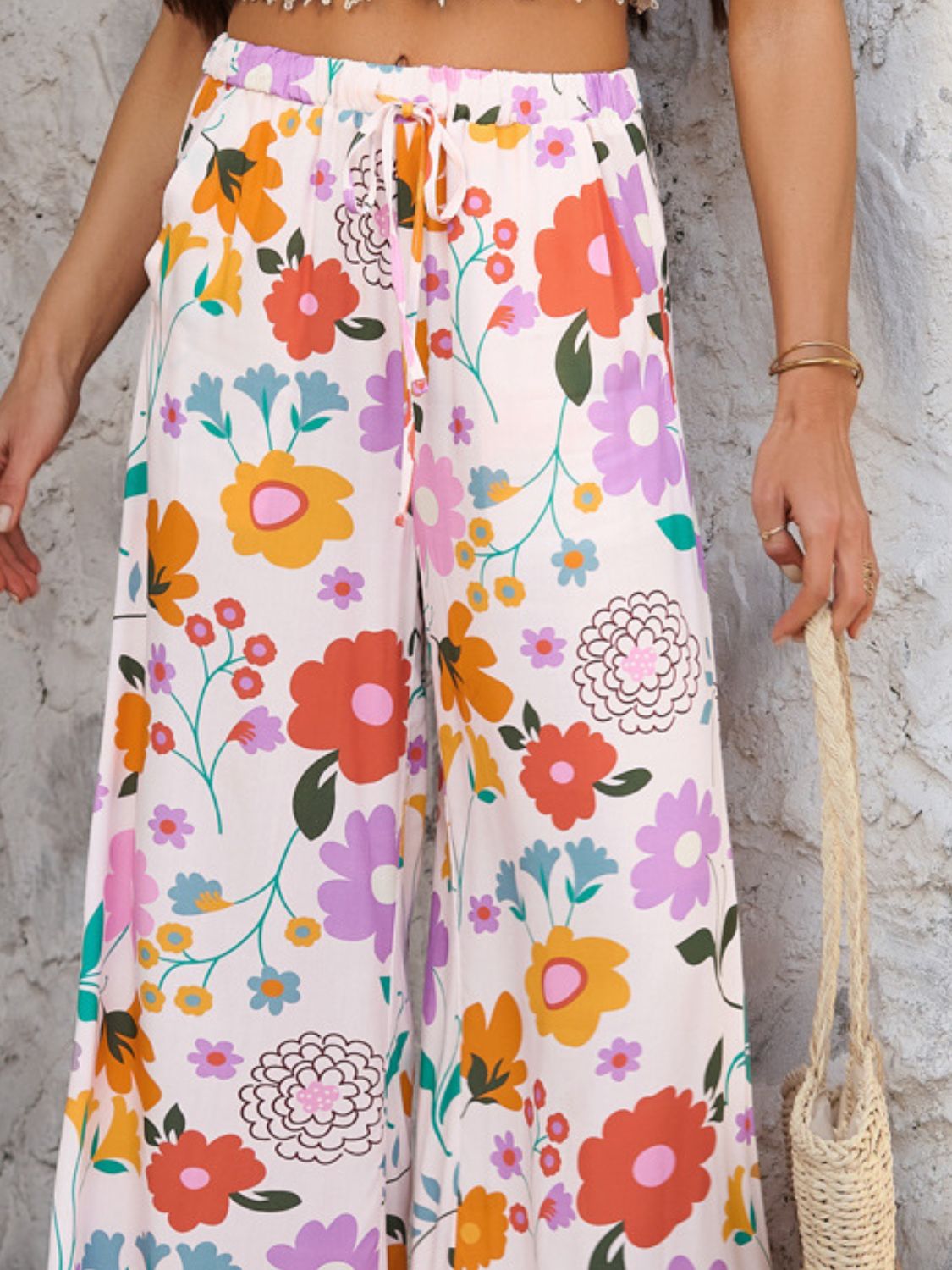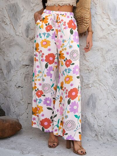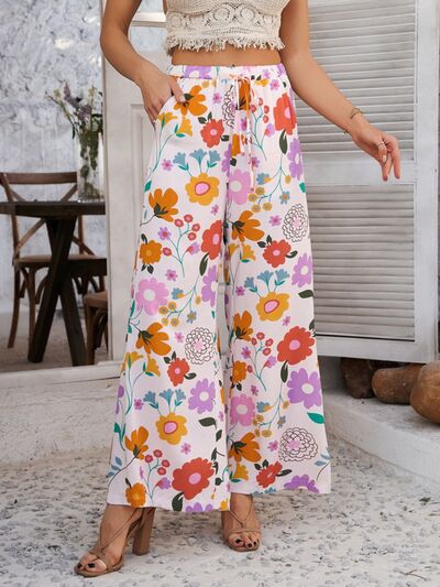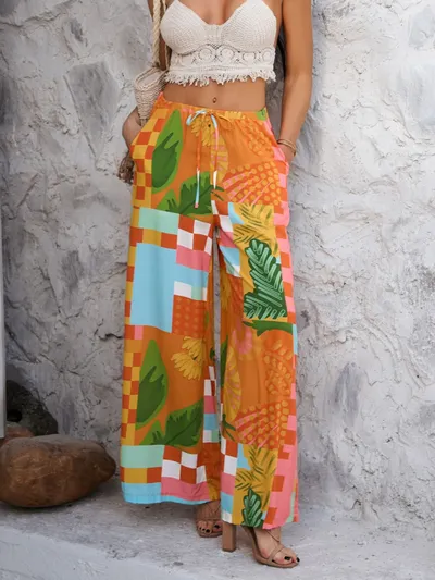 Drawstring Printed Wide Leg Pants
