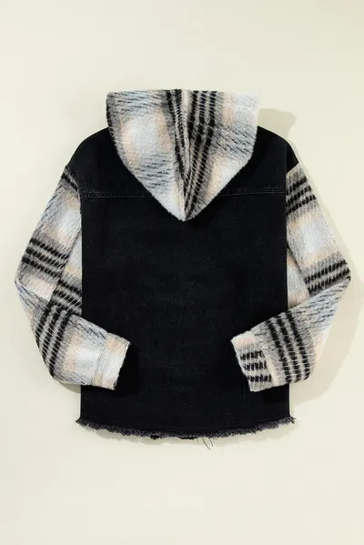 Drawstring Raw Hem Button Up Hooded Denim Jacket
