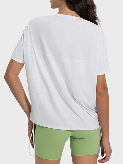 Drawstring Round Neck Short Sleeve Active T-Shirt