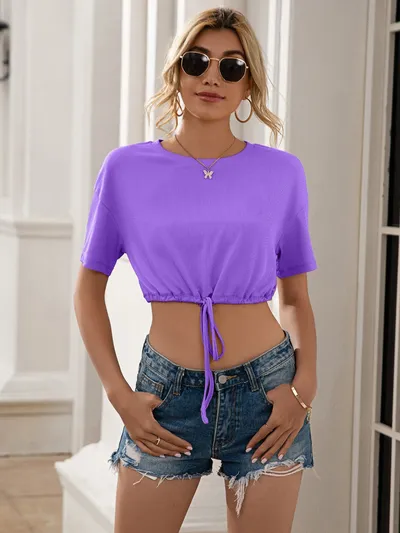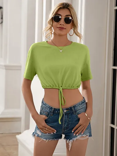 Drawstring Round Neck Short Sleeve T-Shirt