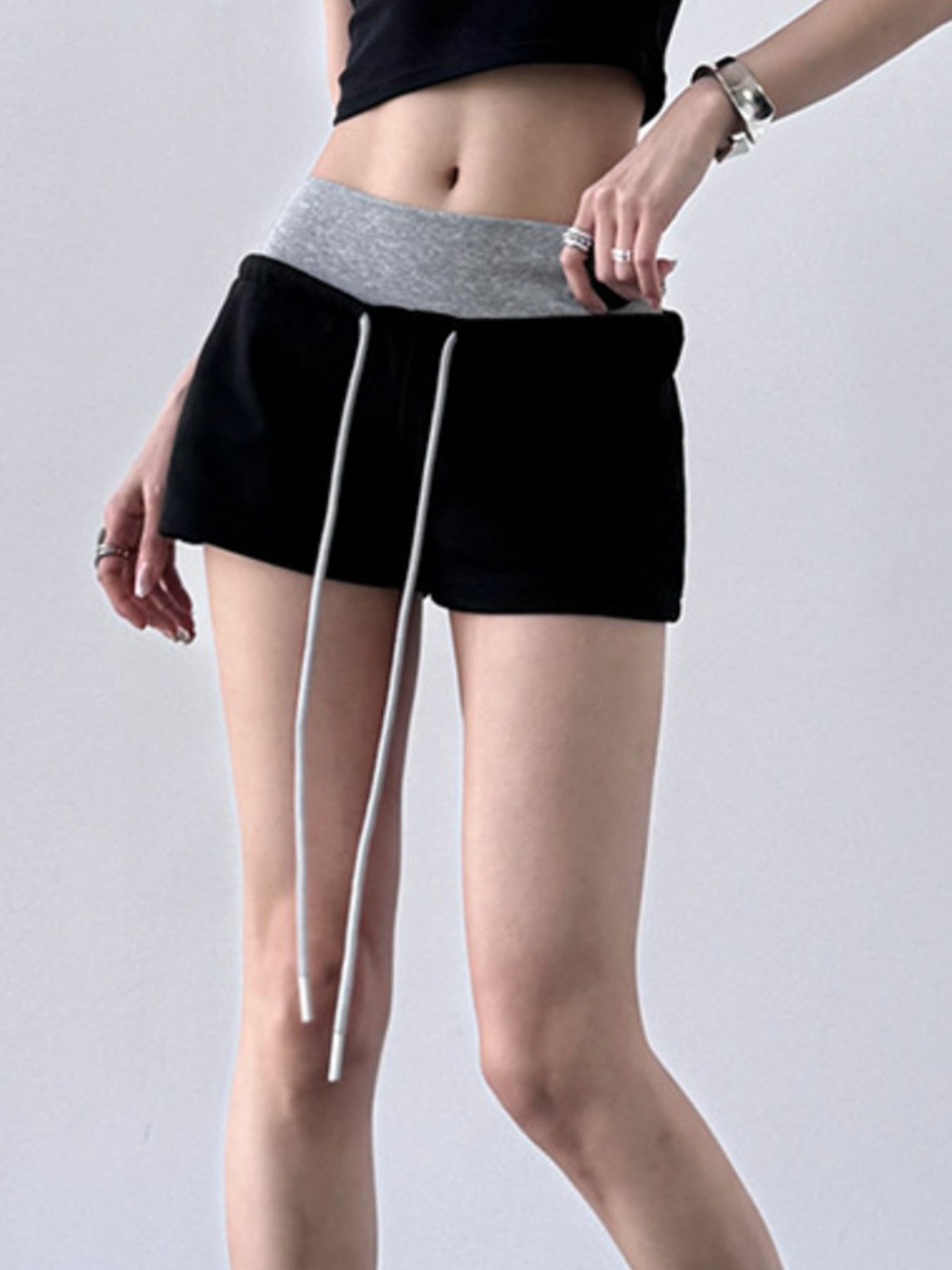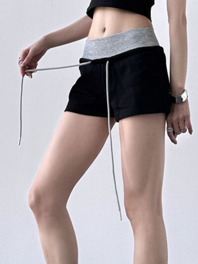 Drawstring Shorts with Contrast Waistband