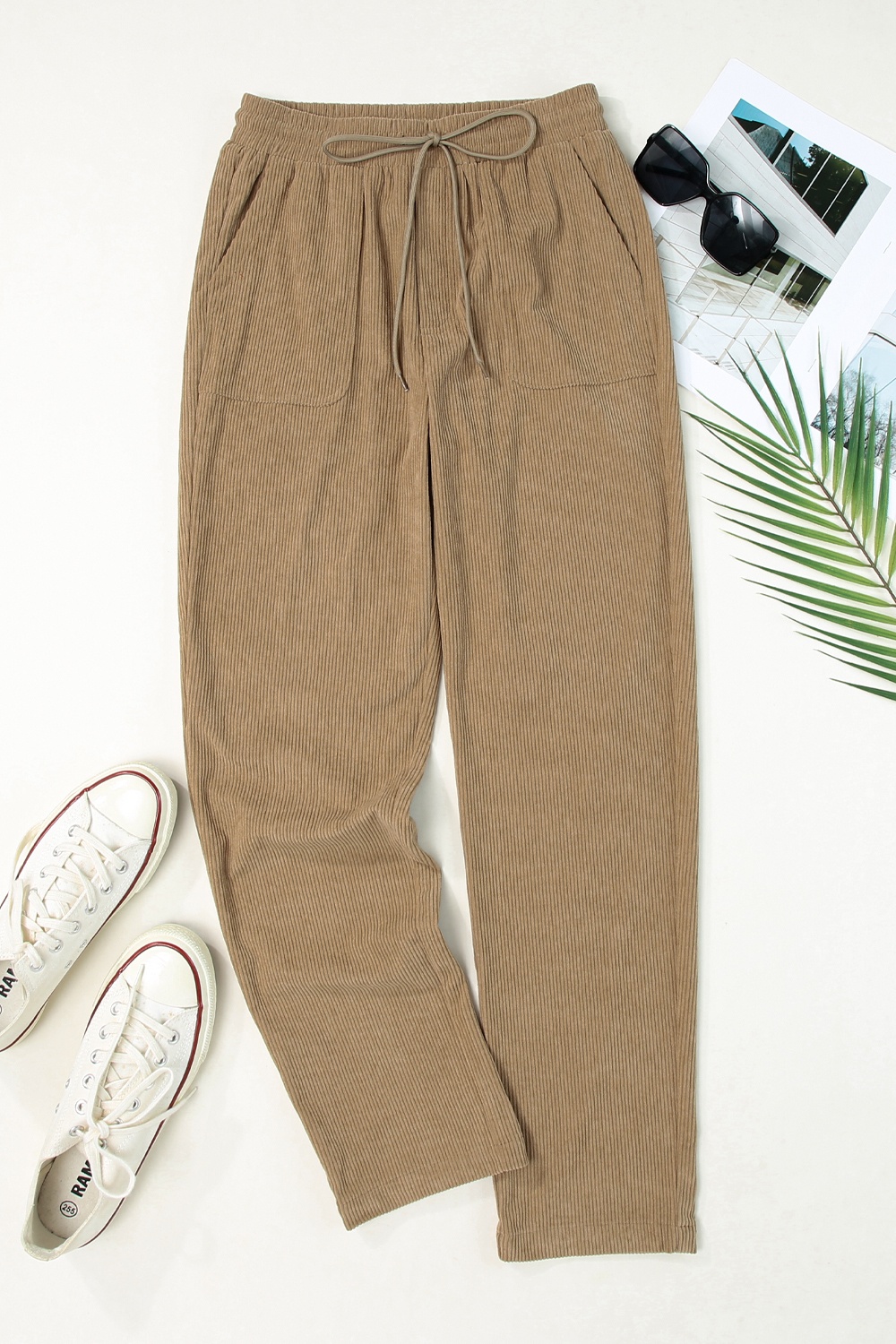 Drawstring Straight Pants with Pockets