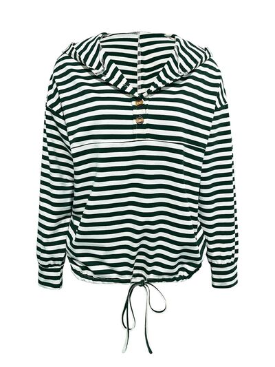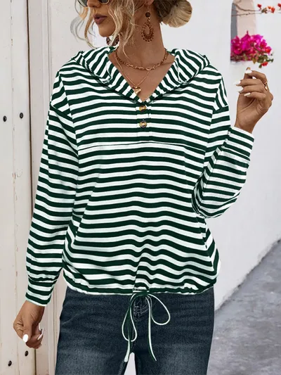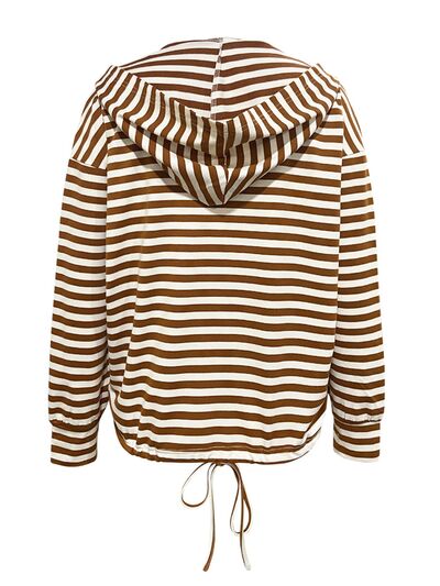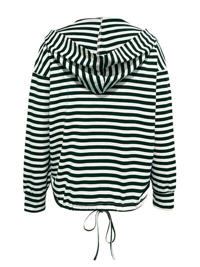 Drawstring Striped Long Sleeve Hoodie