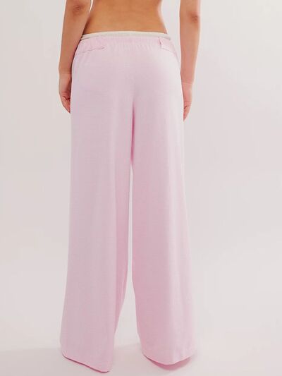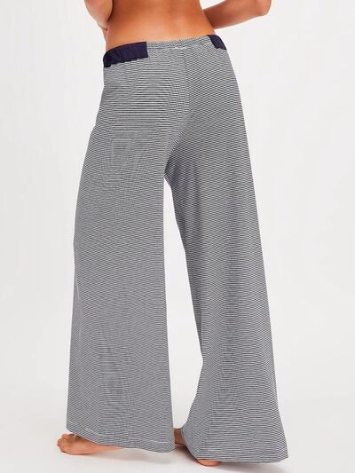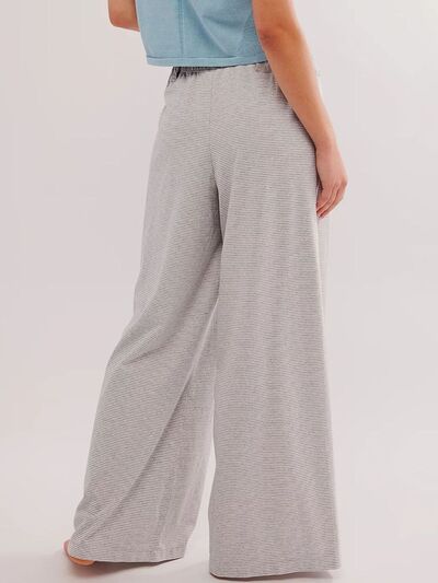 Drawstring Striped Wide Leg Pants