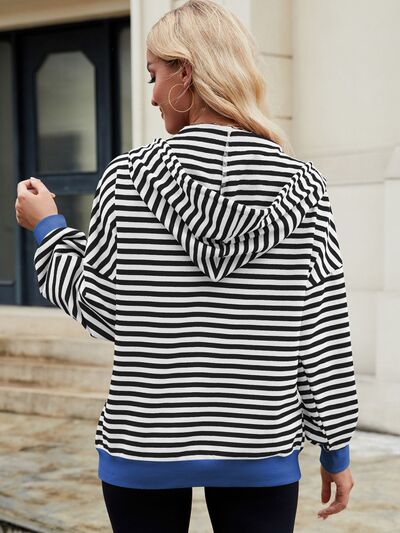 Drawstring Striped Zip Up Long Sleeve Hoodie