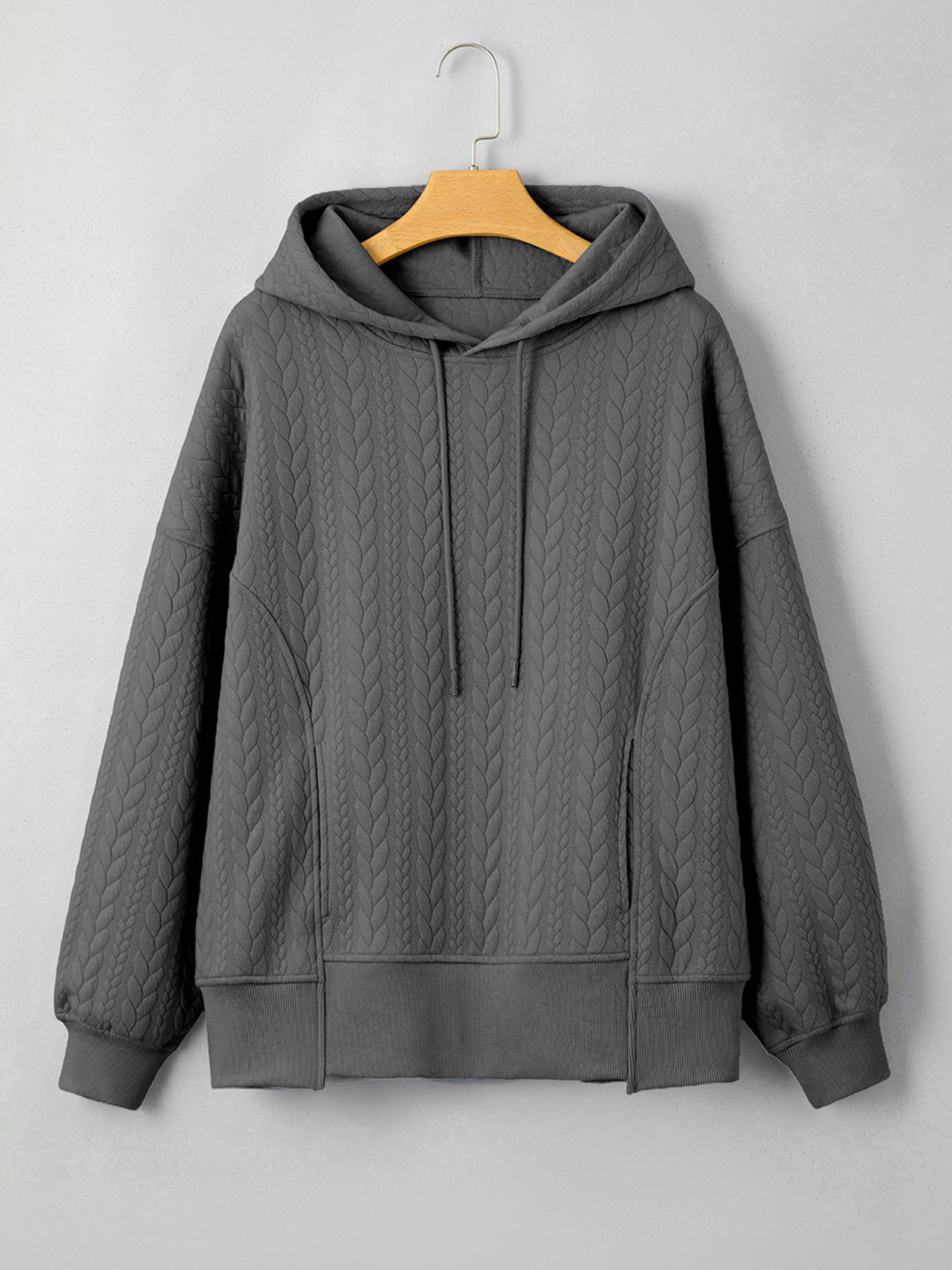 Drawstring Textured Baggy Solid Hoodie