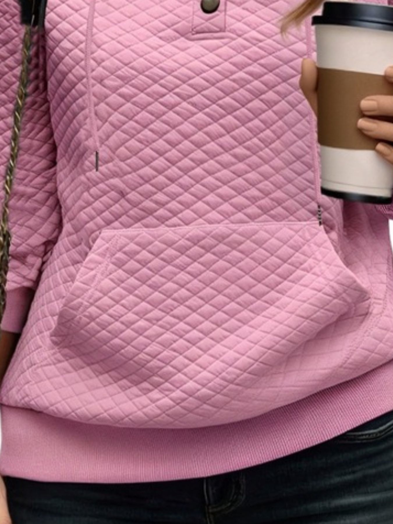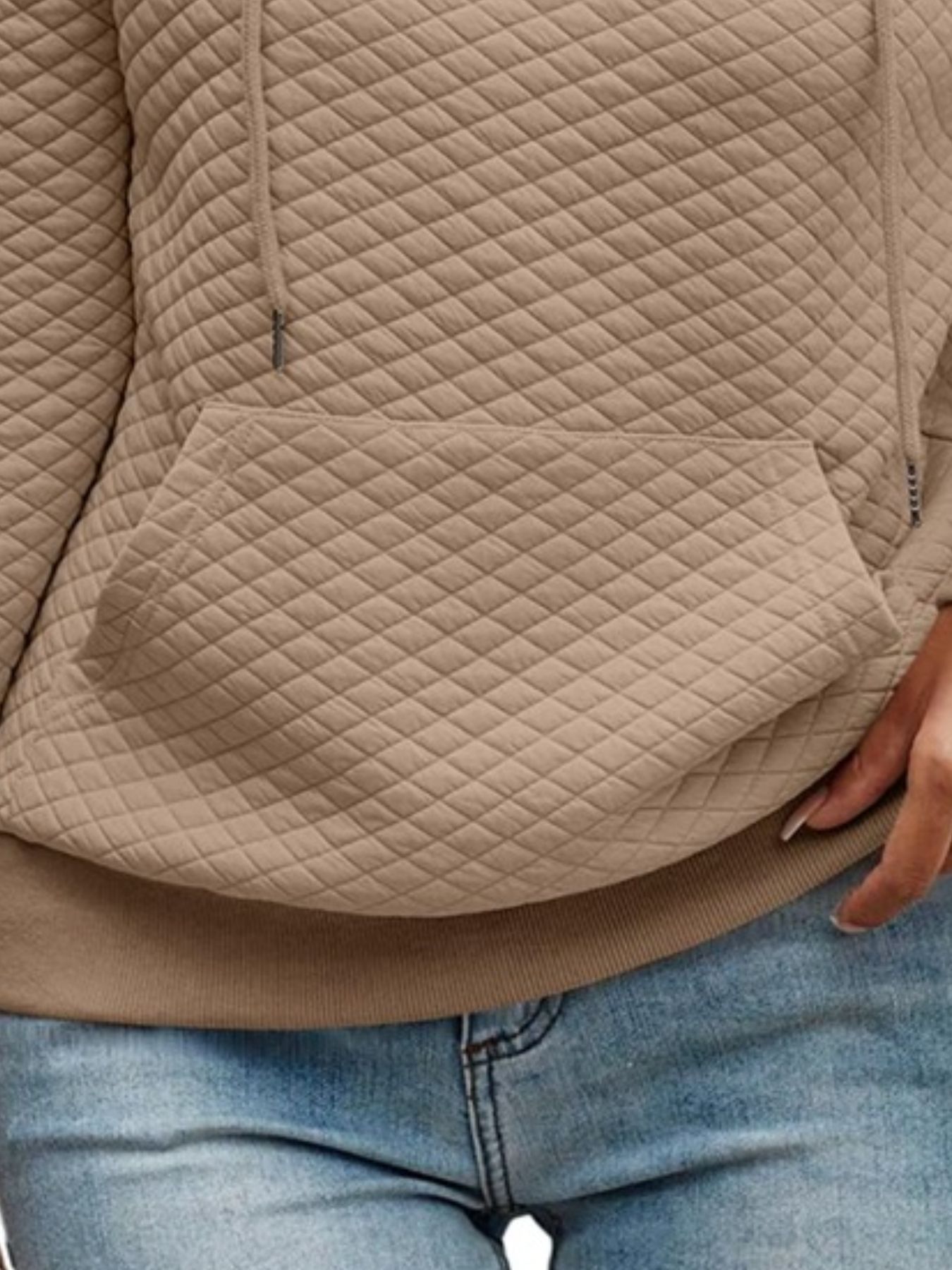 Drawstring Textured Dropped Shoulder Hoodie