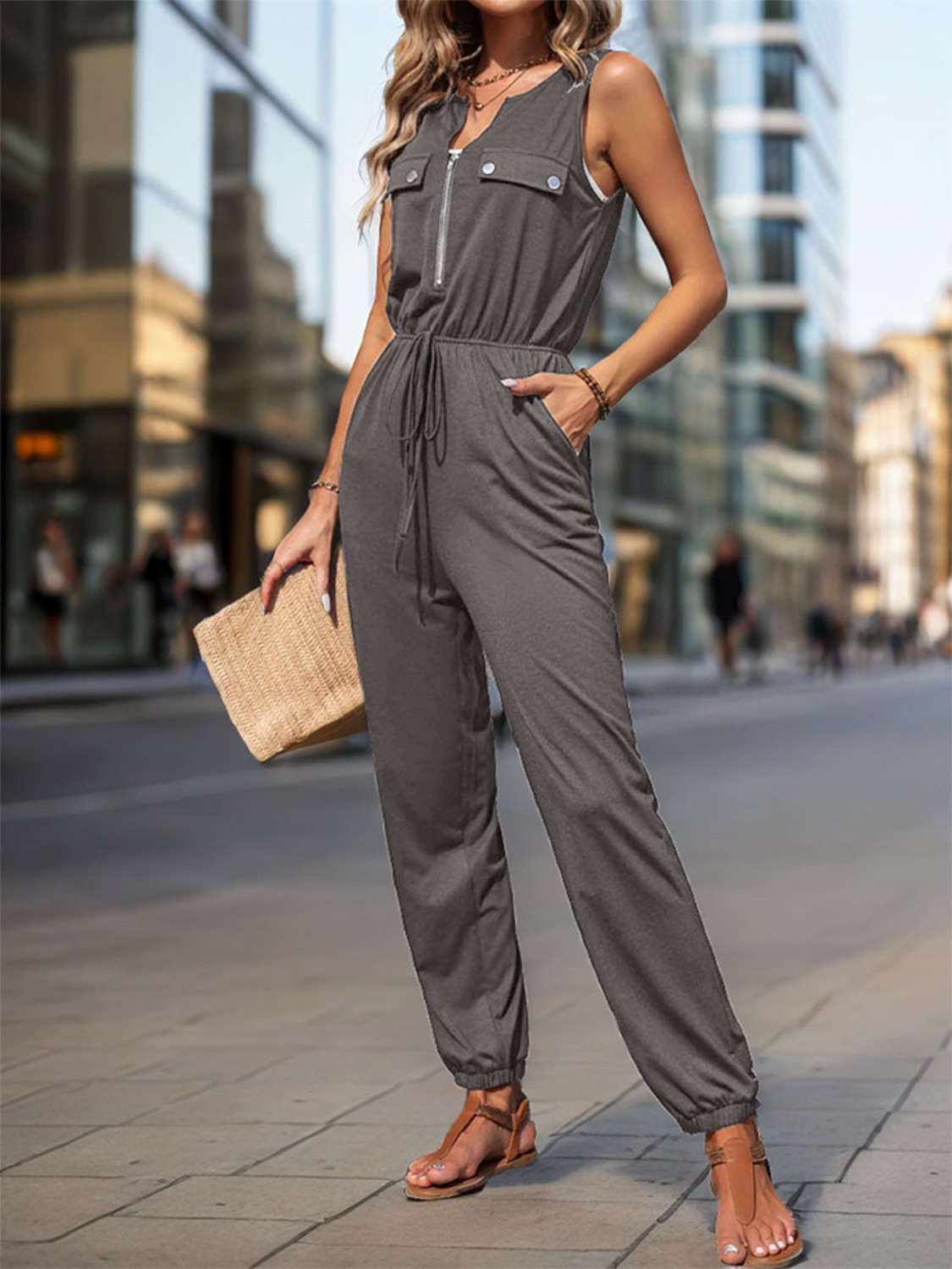 Drawstring Waist Sleeveless Jumpsuit