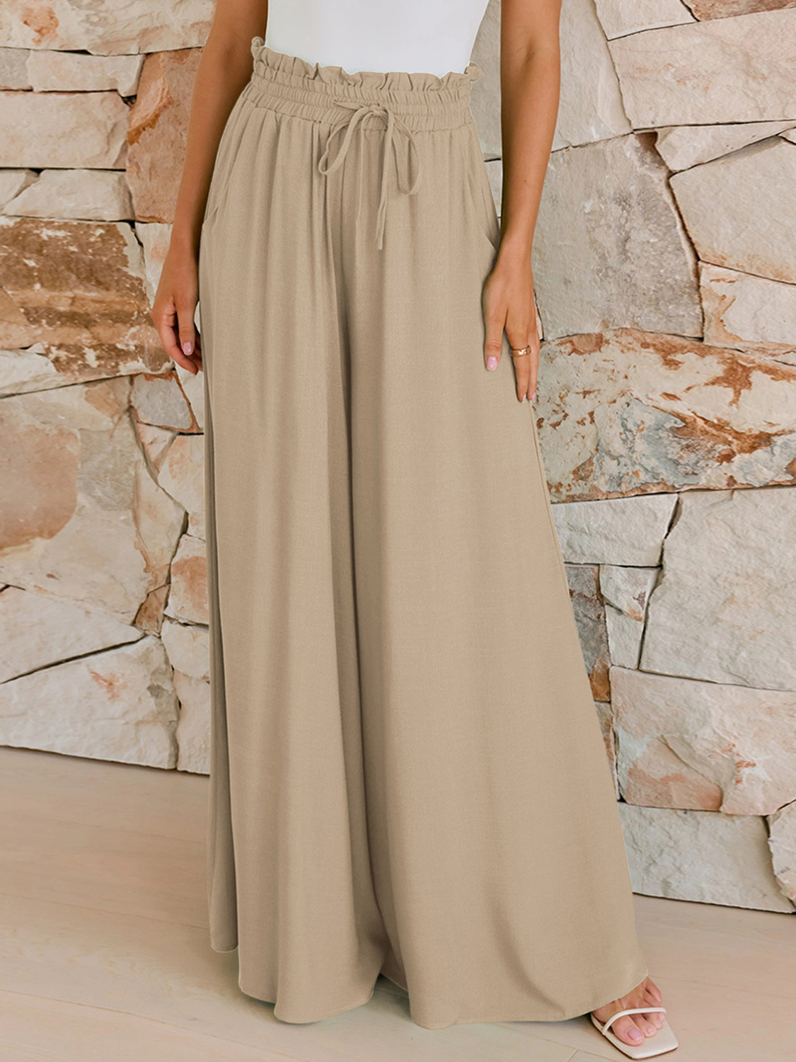Drawstring Wide Leg Pants with Pockets