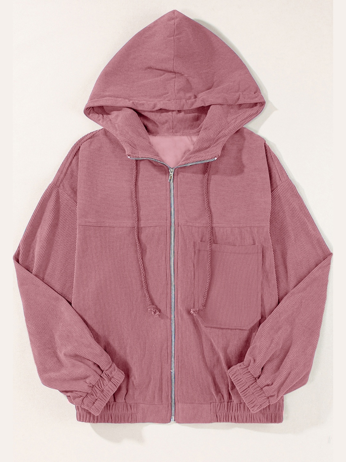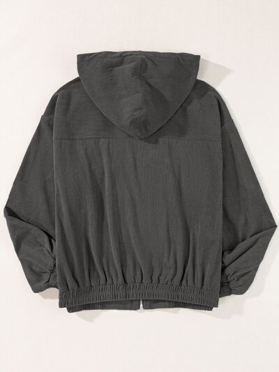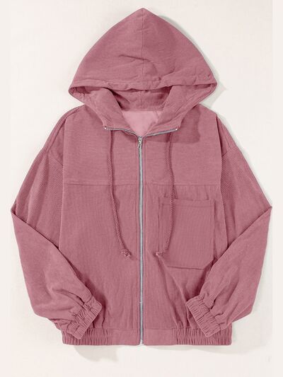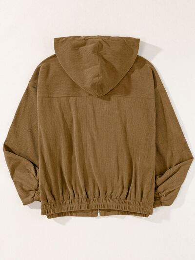Drawstring Zip Up Long Sleeve Hooded Jacket