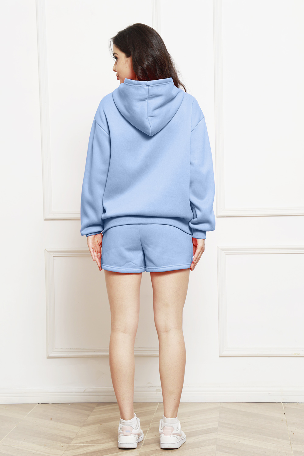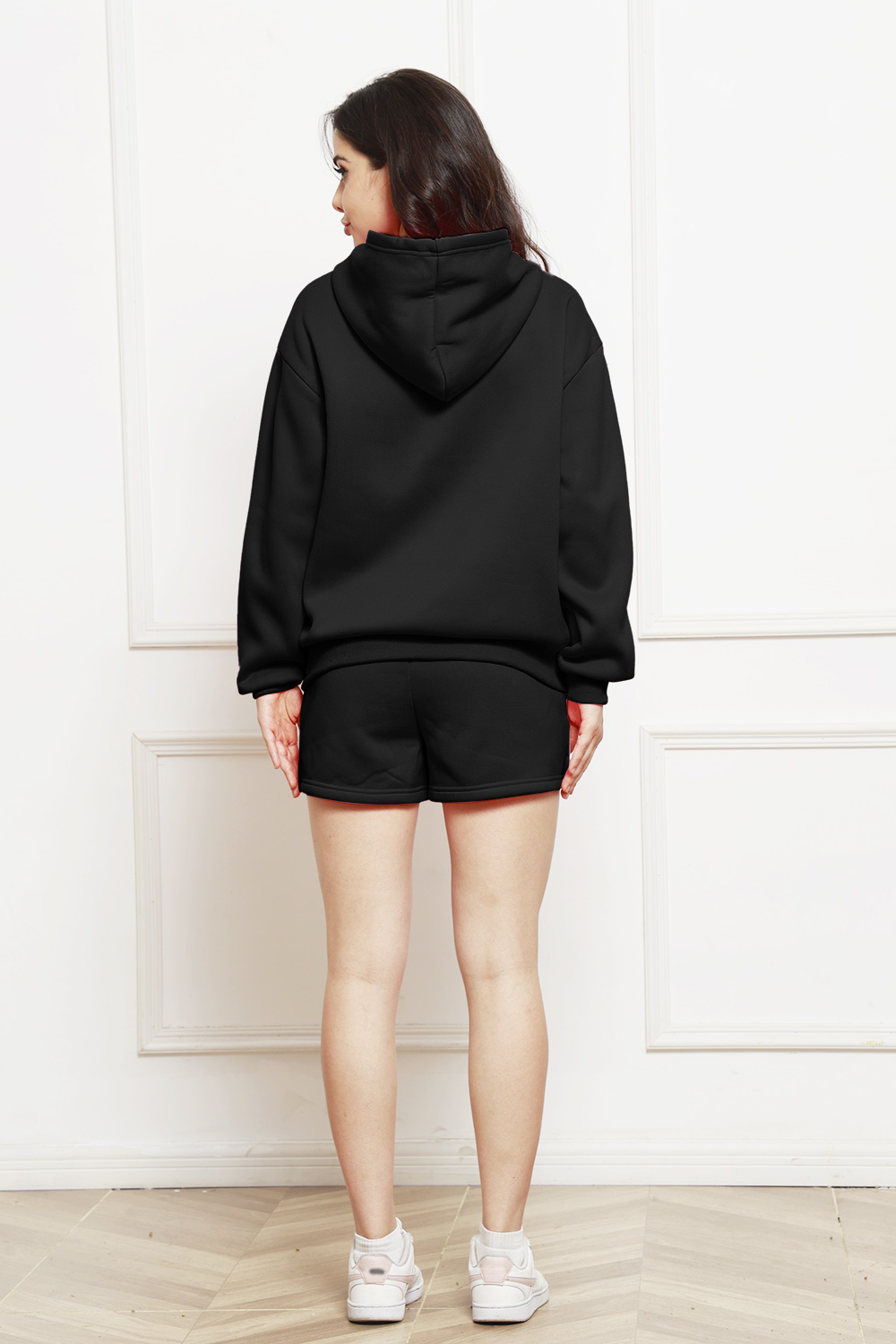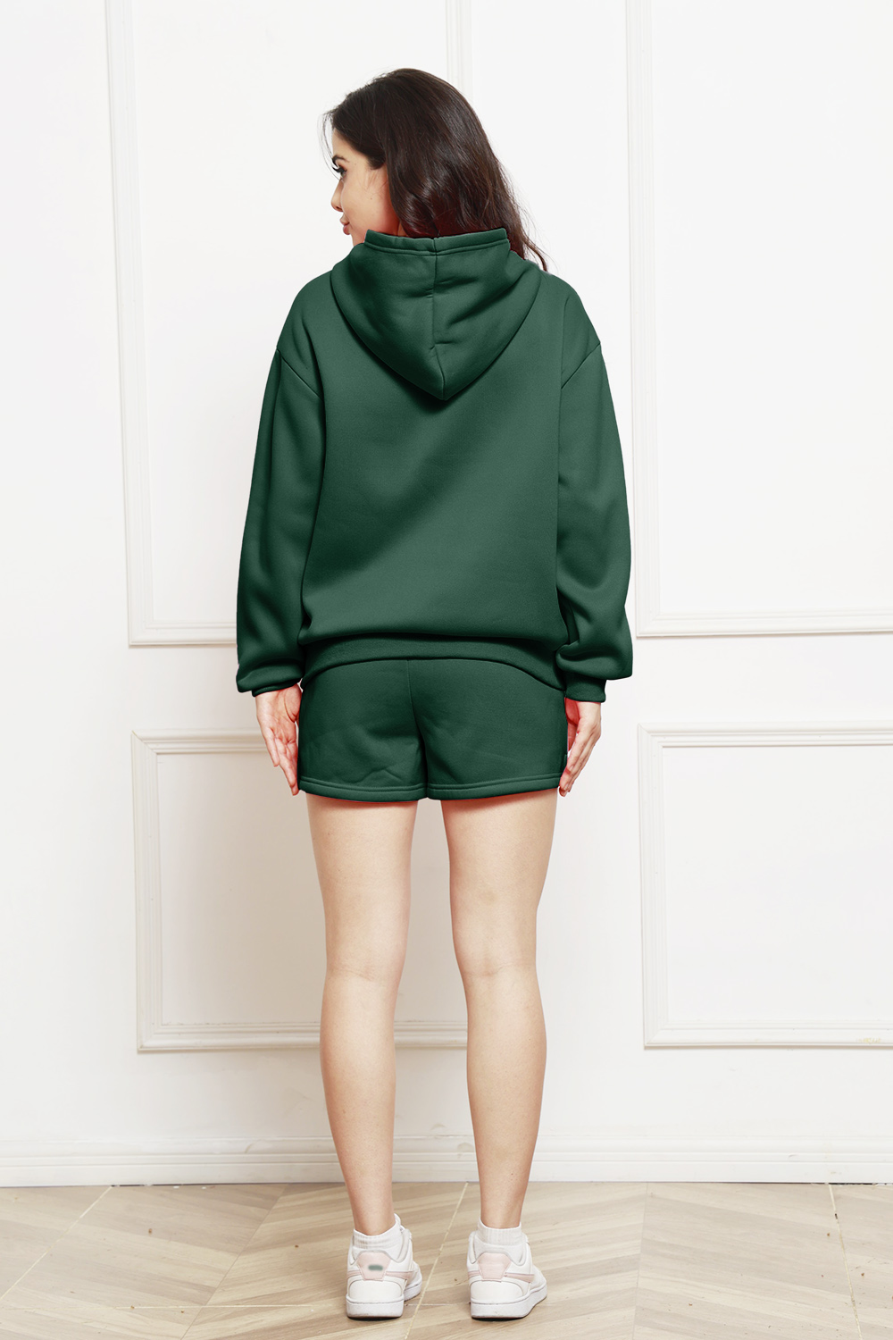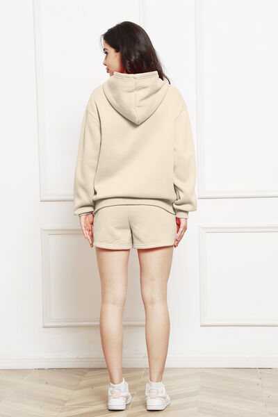 Drop Shoulder Long Sleeve Hoodie and Shorts Set