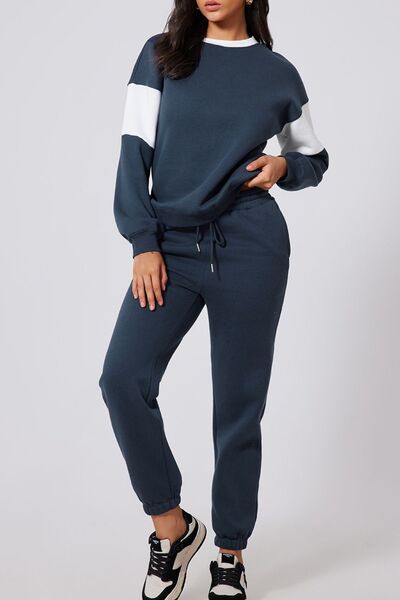 Drop Shoulder Loose Sweatshirt and Joggers Active Set