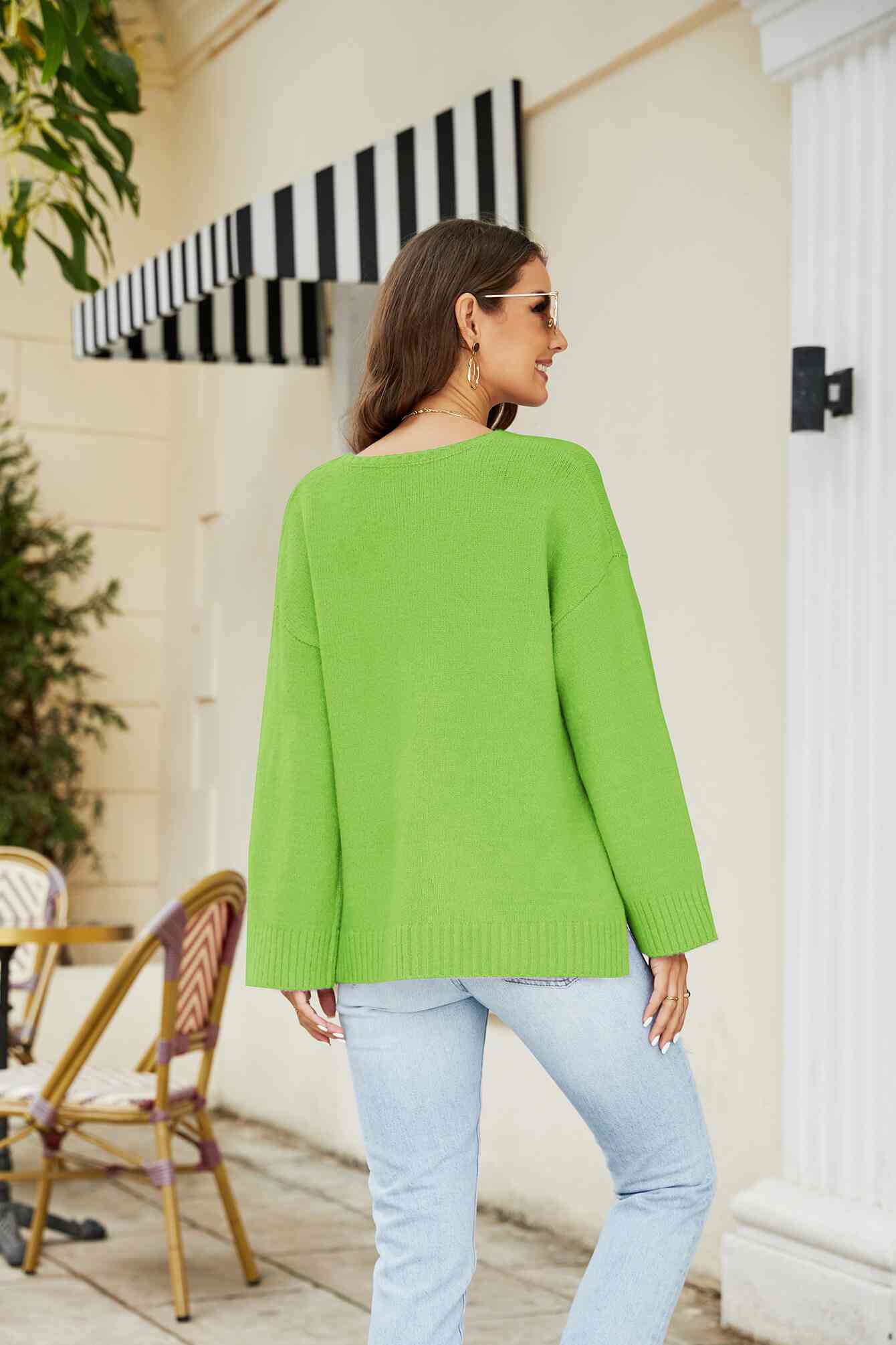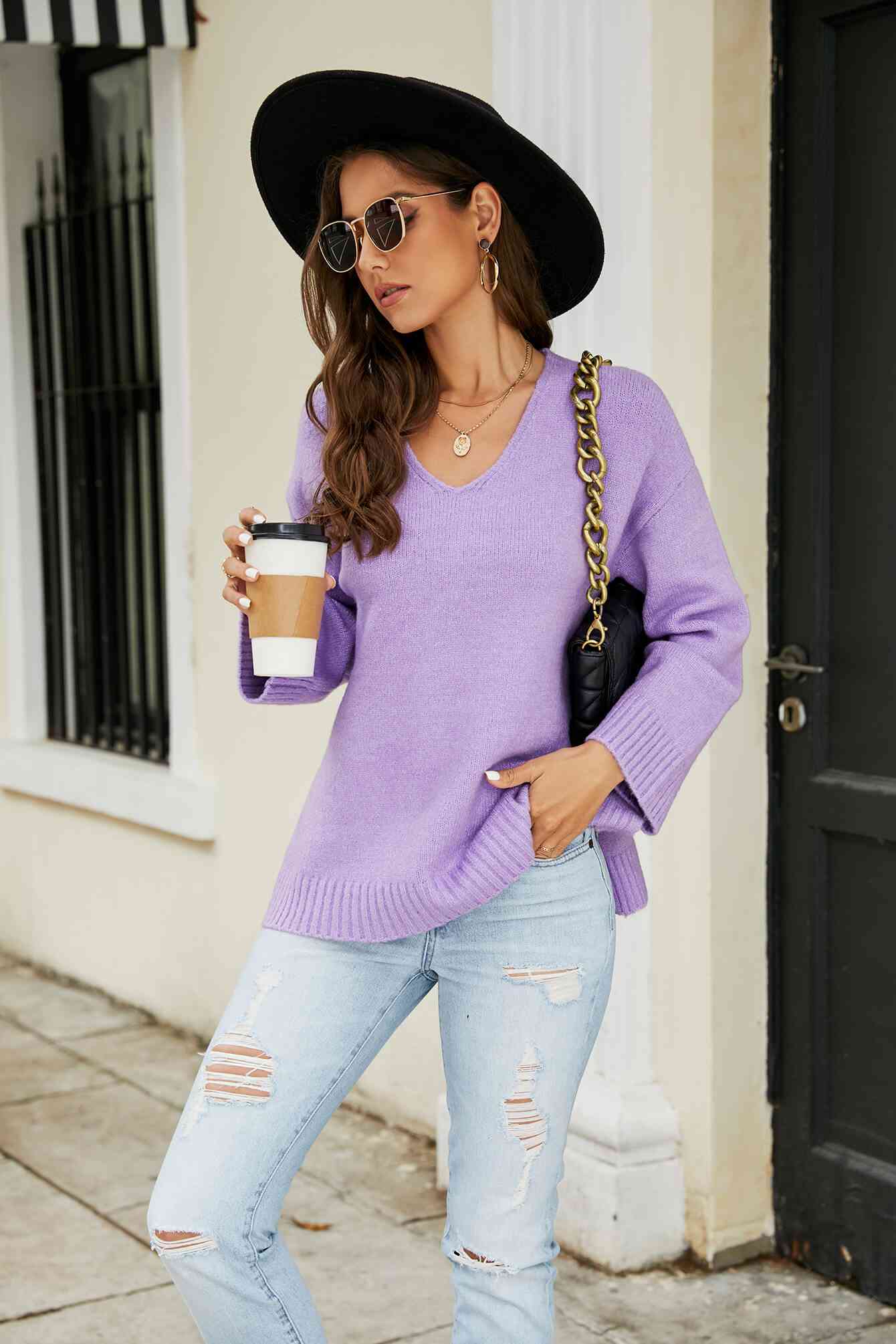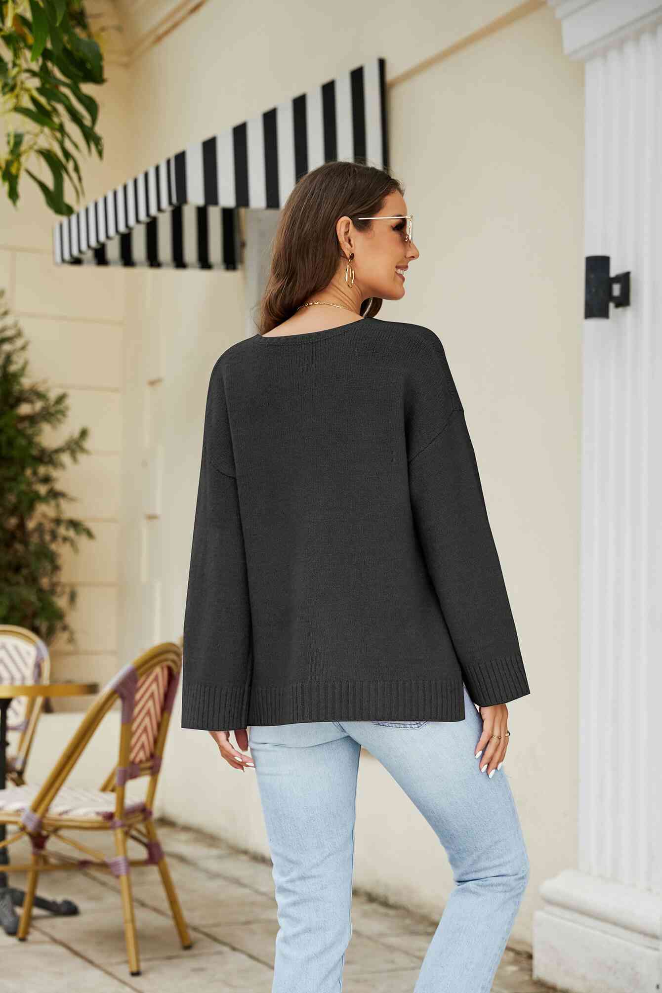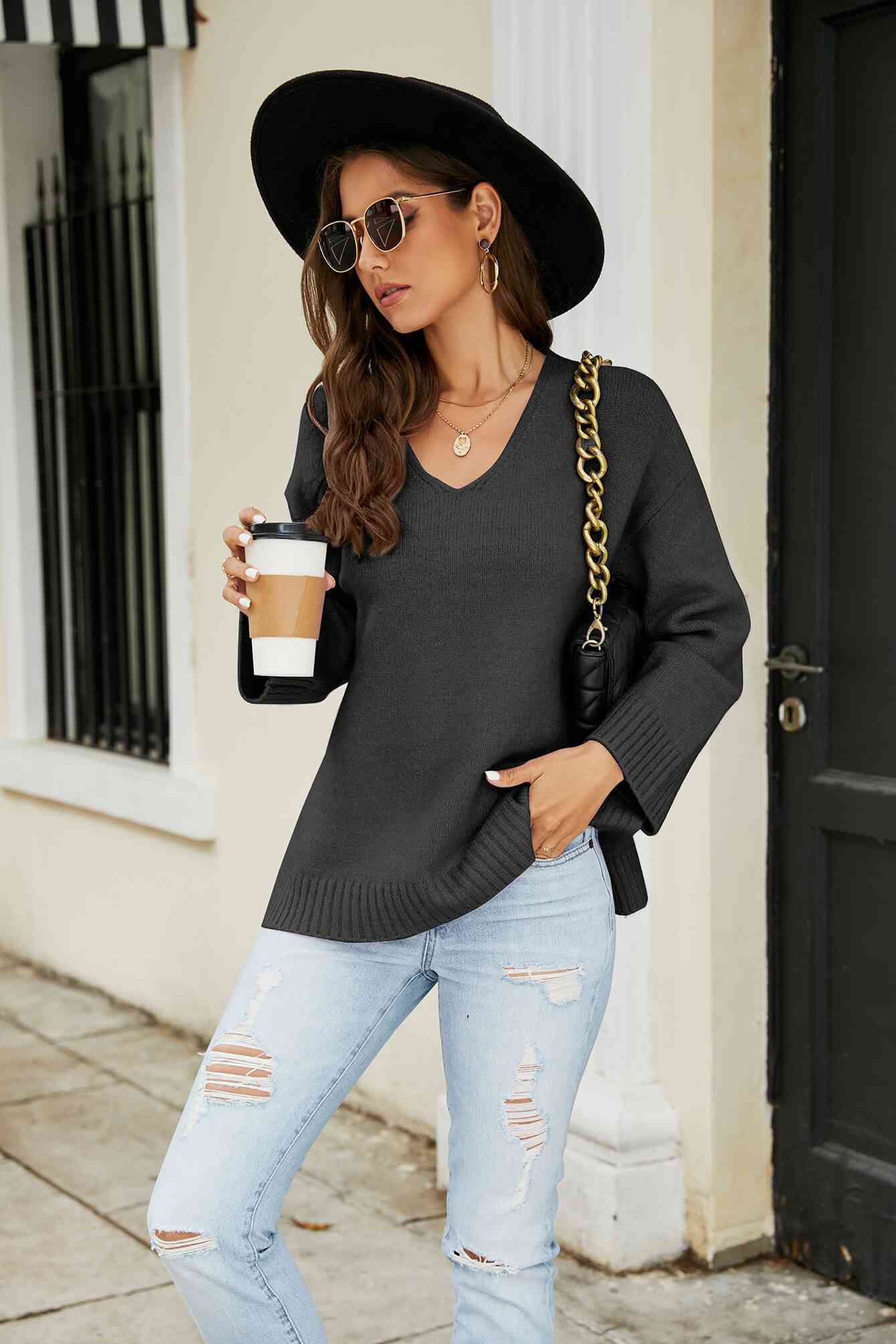 Drop Shoulder V-Neck Knit Pullover