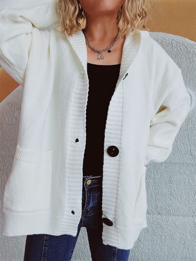 Dropped Shoulder Long Sleeve Hooded Cardigan