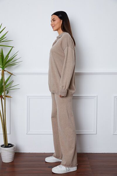 Dropped Shoulder Sweater and Long Pants Set