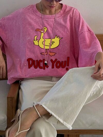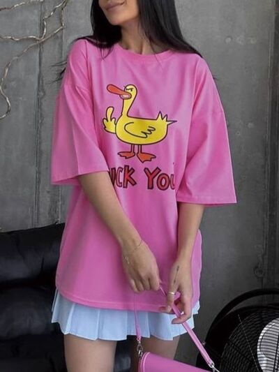 Duck Graphic Oversized Round Neck T-Shirt