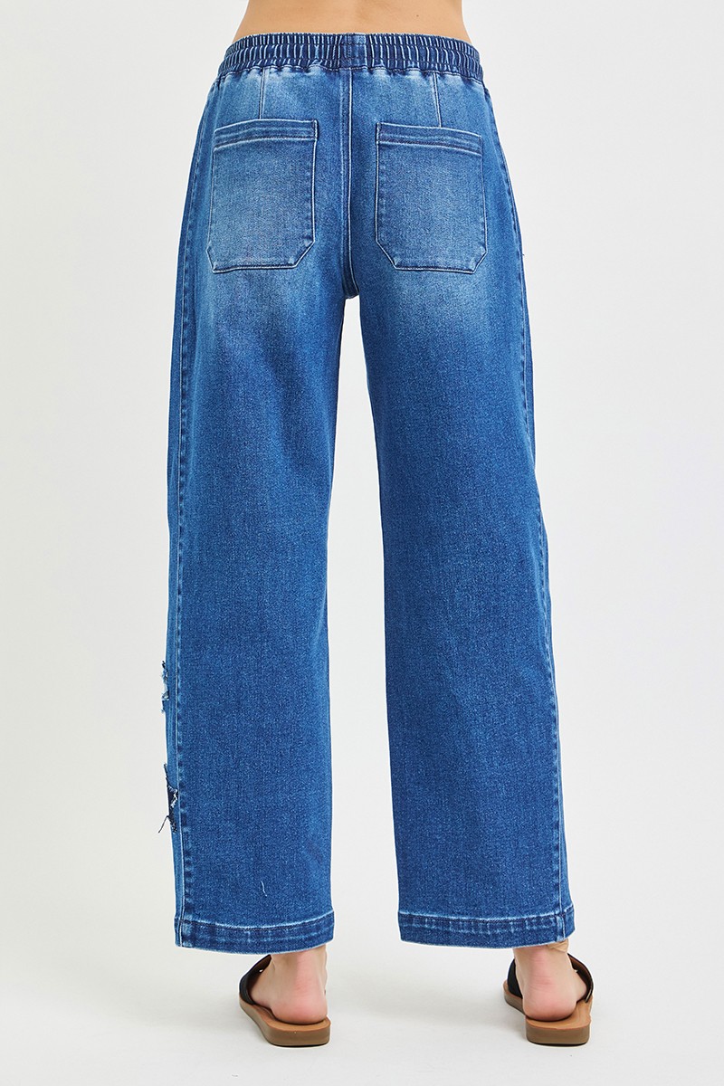 Elastic Band Slouchy Cropped Barrel with Star Patch