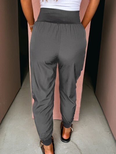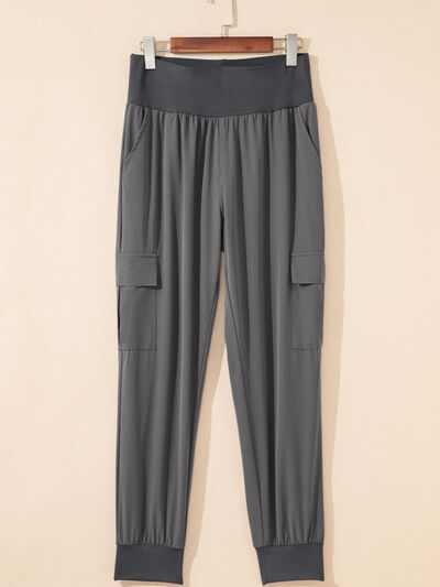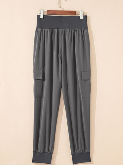 Elastic High Waist Pocketed Cargo Jogger Pants