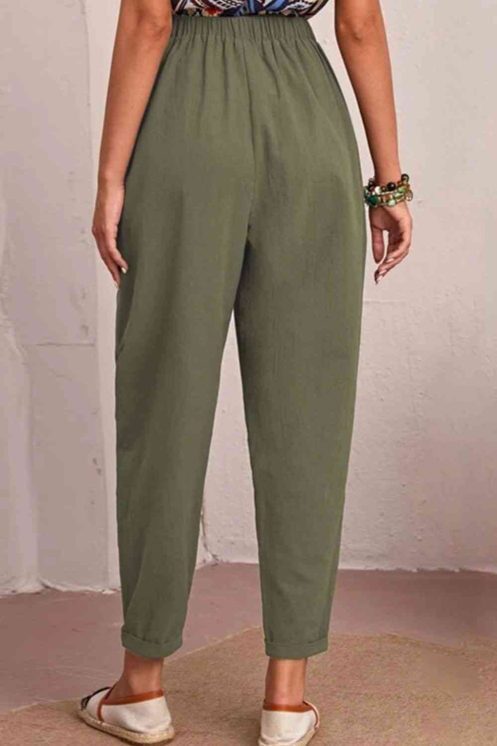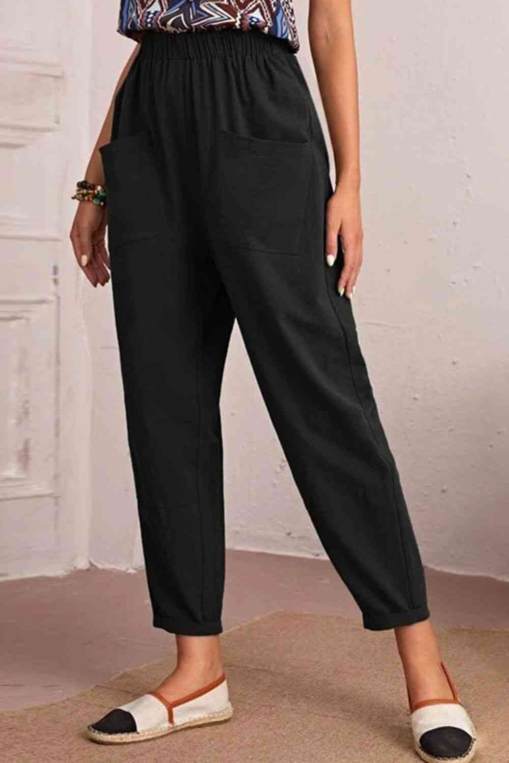 Elastic Waist Pocket Tapered Pants