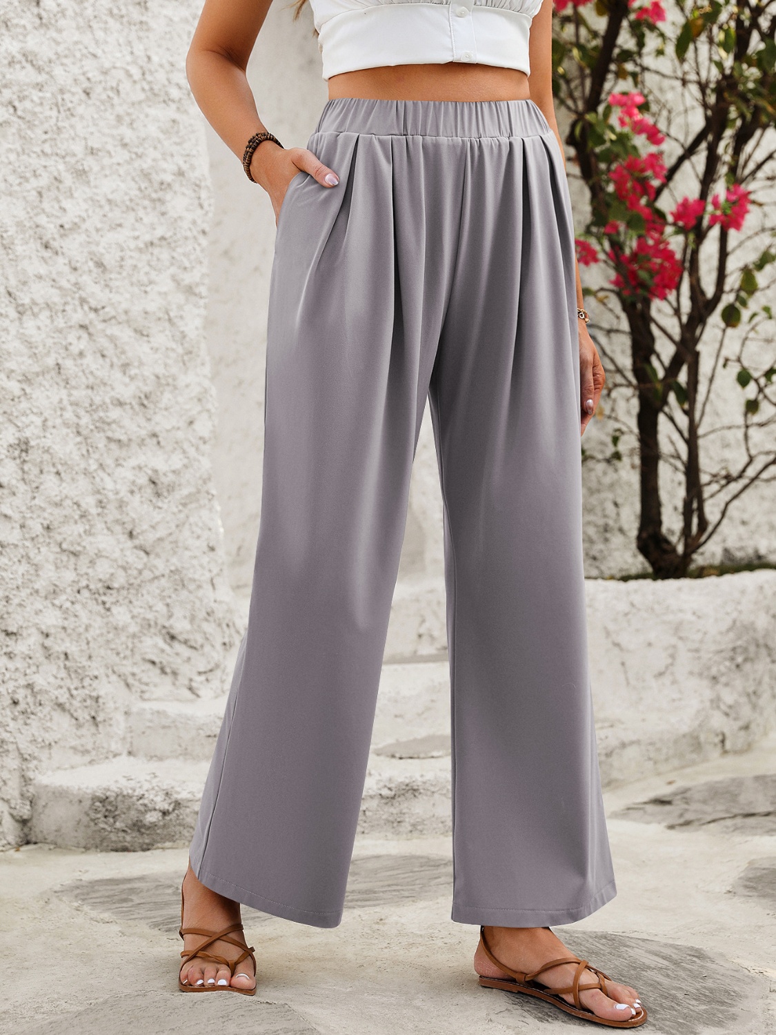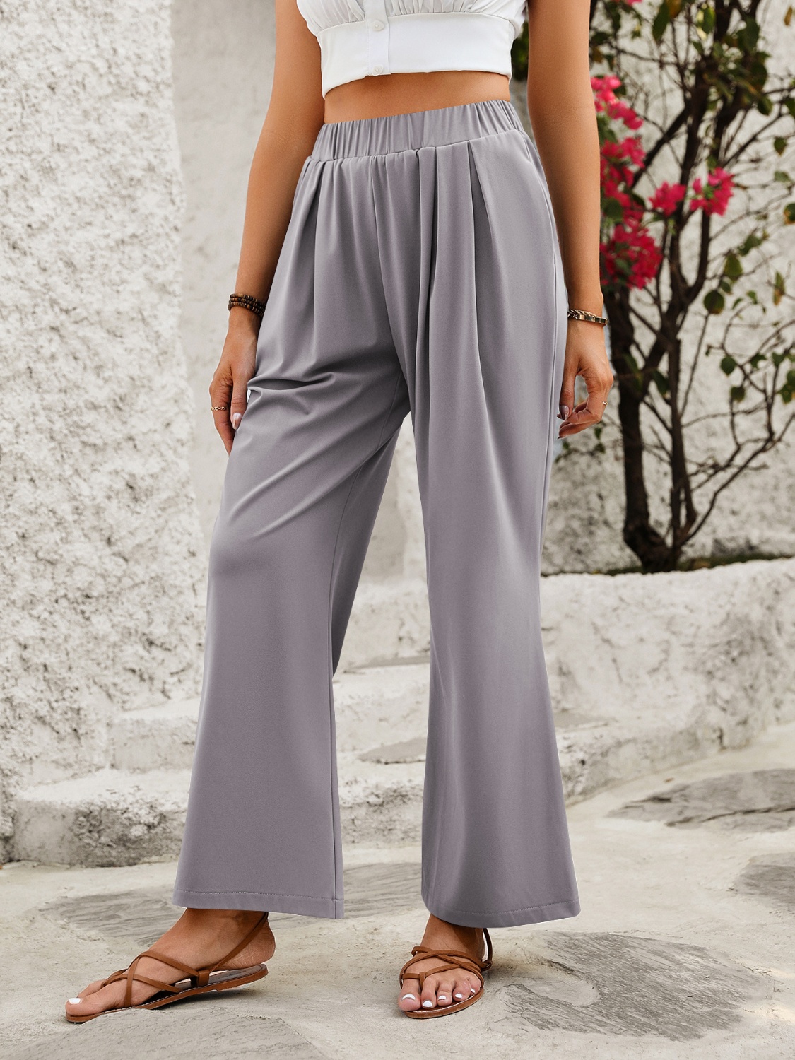 Elastic Waist Wide Leg Pants