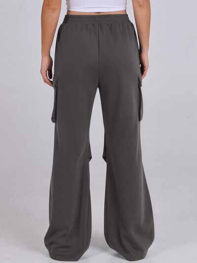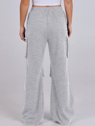Elastic Waist Wide Leg Pants with Pockets