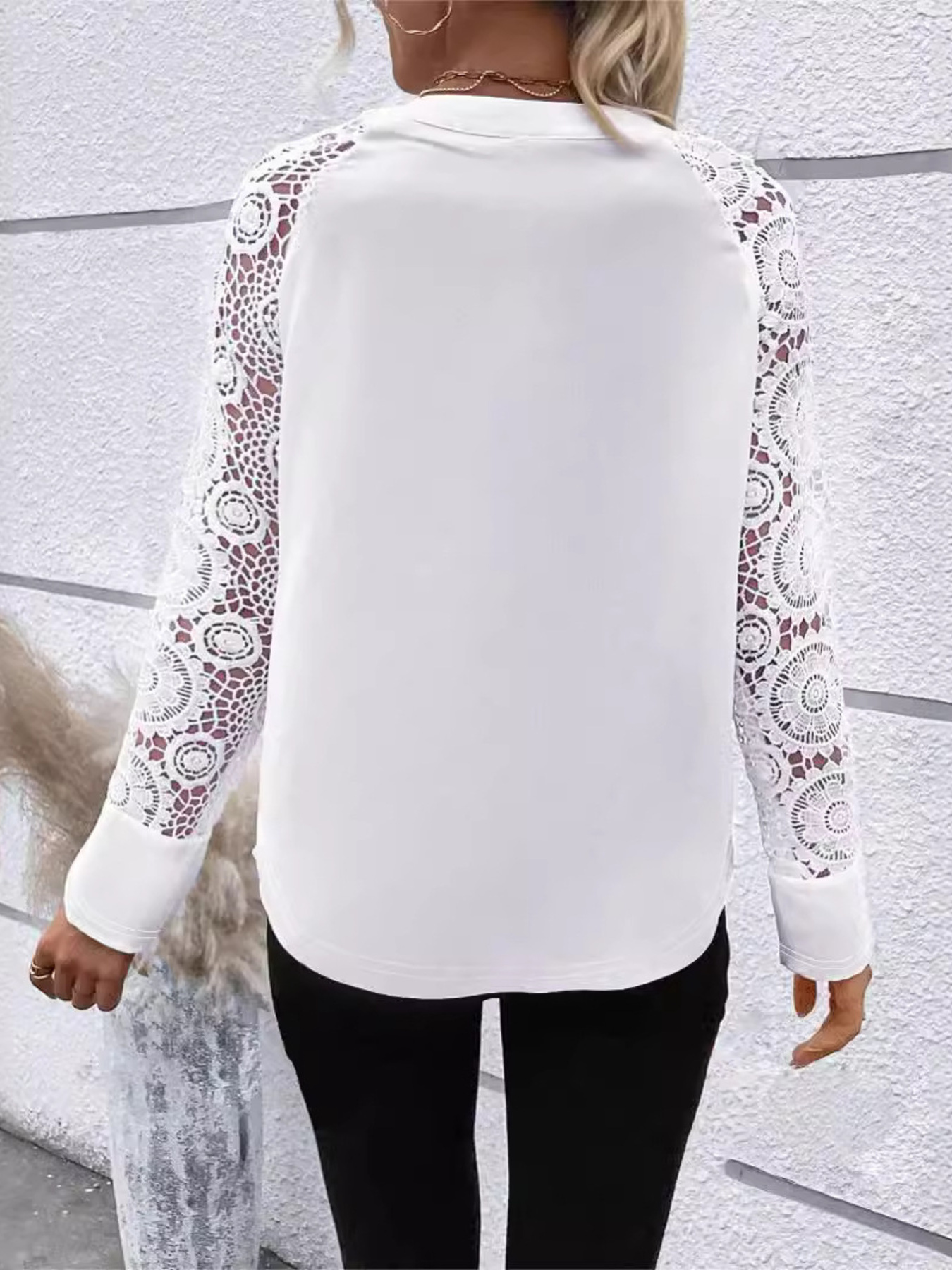 Elegant Lace Sleeve V-Neck Blouse