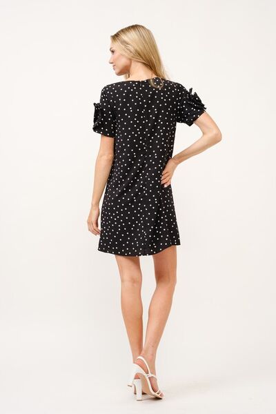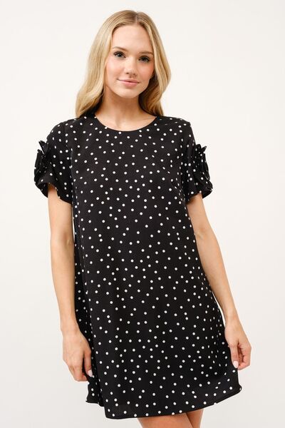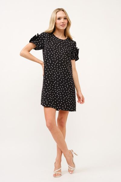 Embellished Sleeve Polka Dots Shift Dress