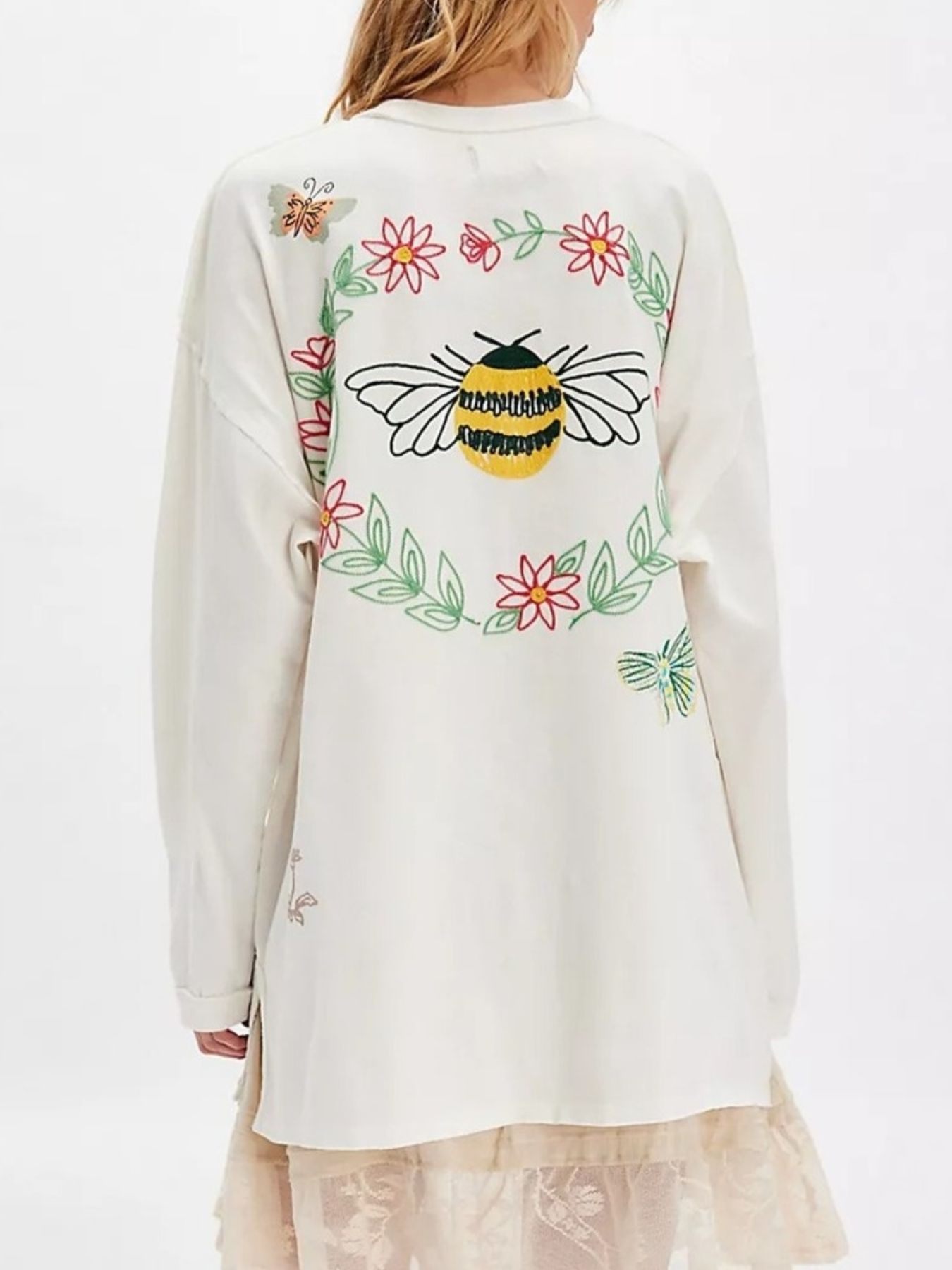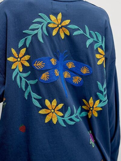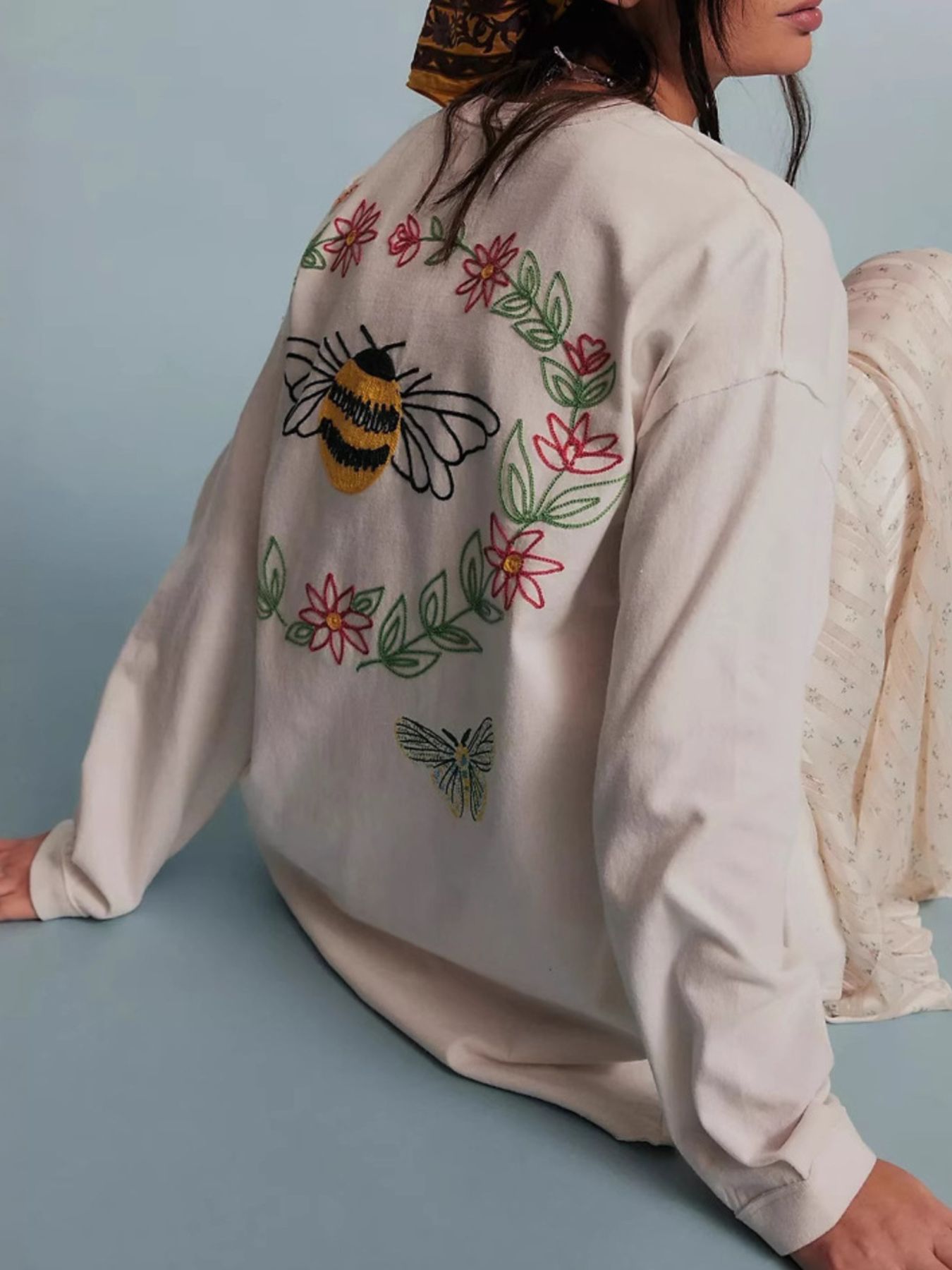 Embroidered Crew Neck Long Sleeve Sweatshirt