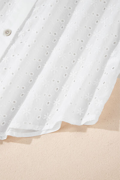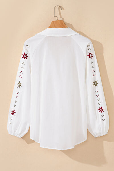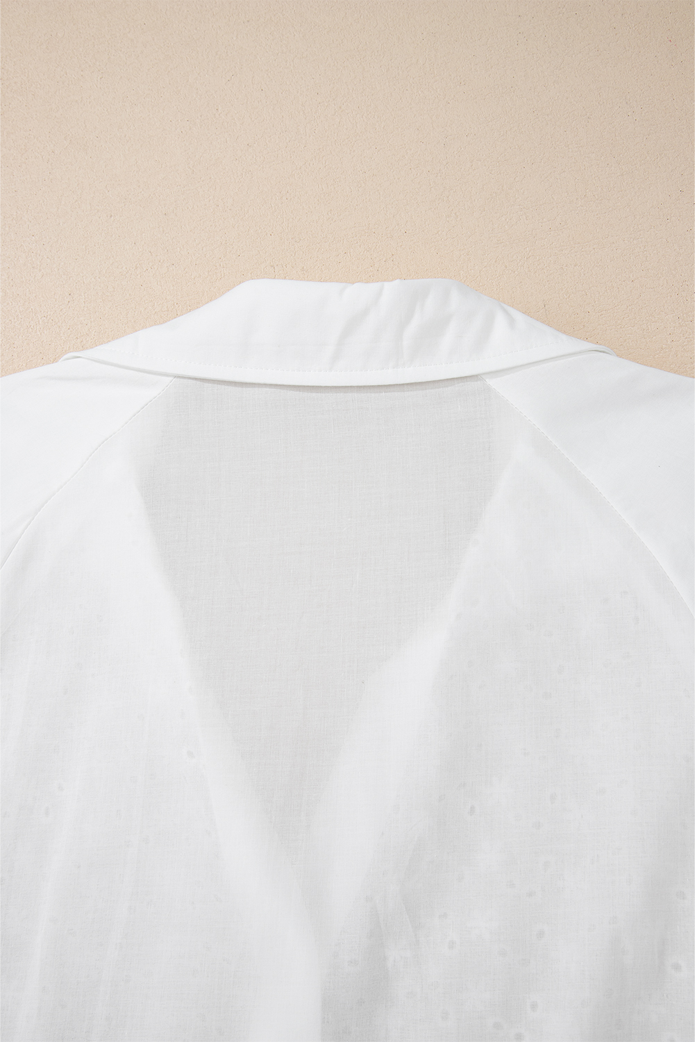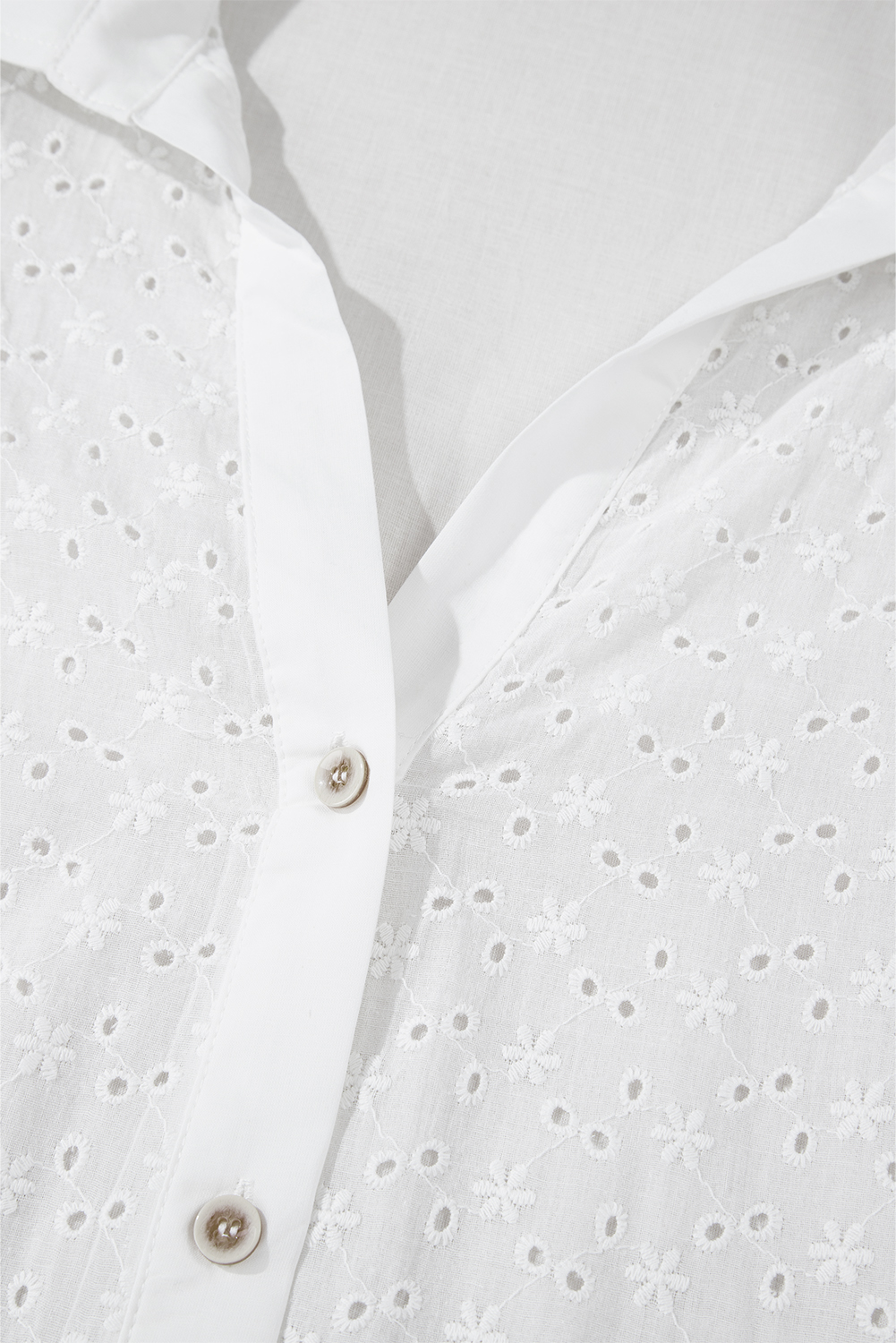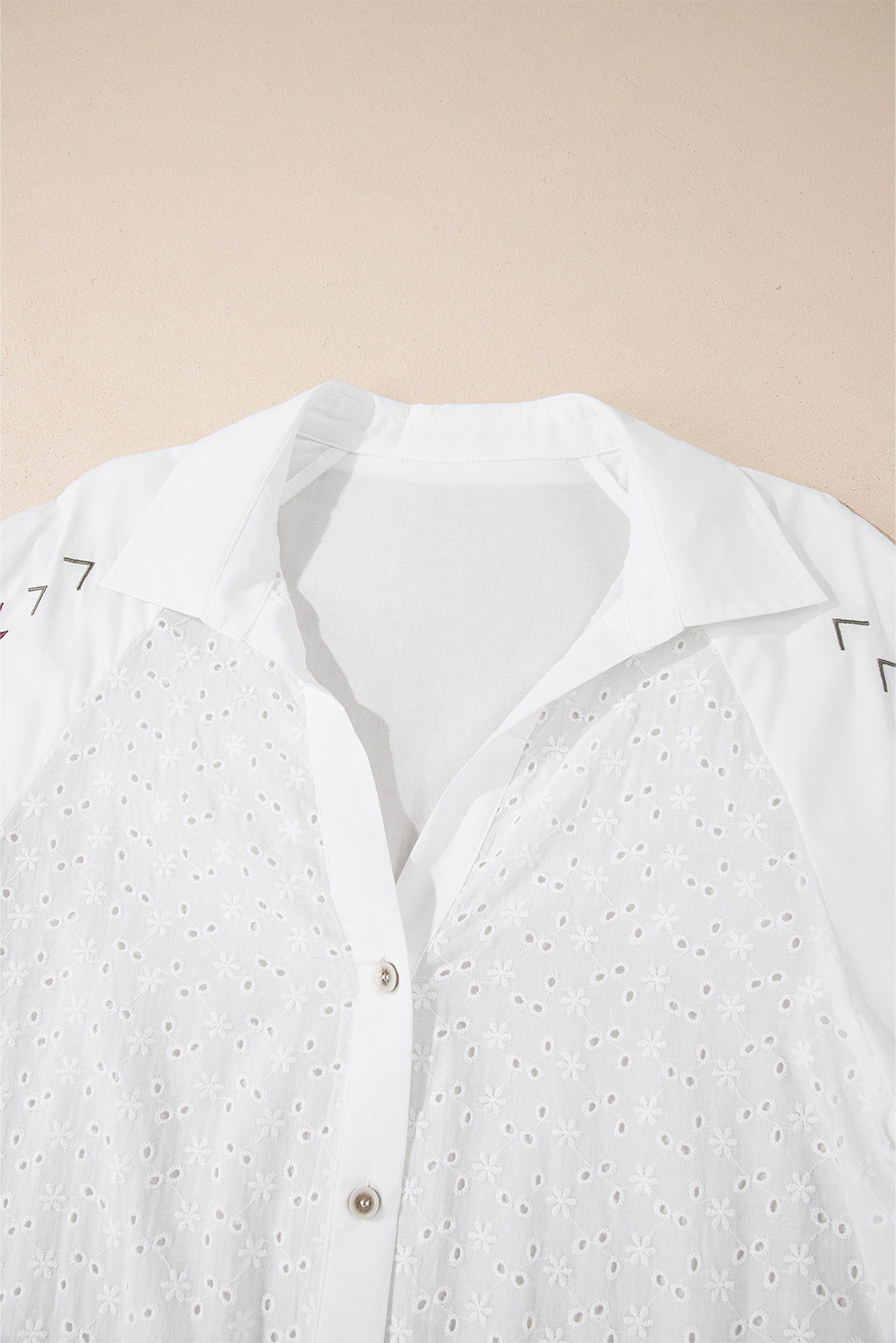 Embroidered Eyelet Collared Neck Long Sleeve Shirt